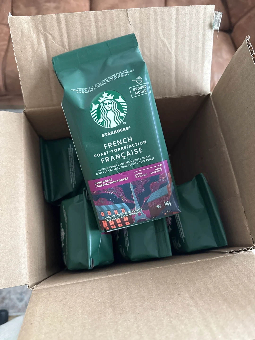 Buy & SellStarbucks French Roast Coffee (5x 340g)Starbucks French Roast Coffee (5x 340g)$35Selling a box of Starbucks French Roast coffee! Each box contains 5 bags of ground coffee, each 340g. Best before 2026 May 19ConditionNewWHERE TO MEETYonge–EglintonView MapSELLERverifiedKristinaYonge St.Clair28421 reviews4 chats·4 favorites·81 views