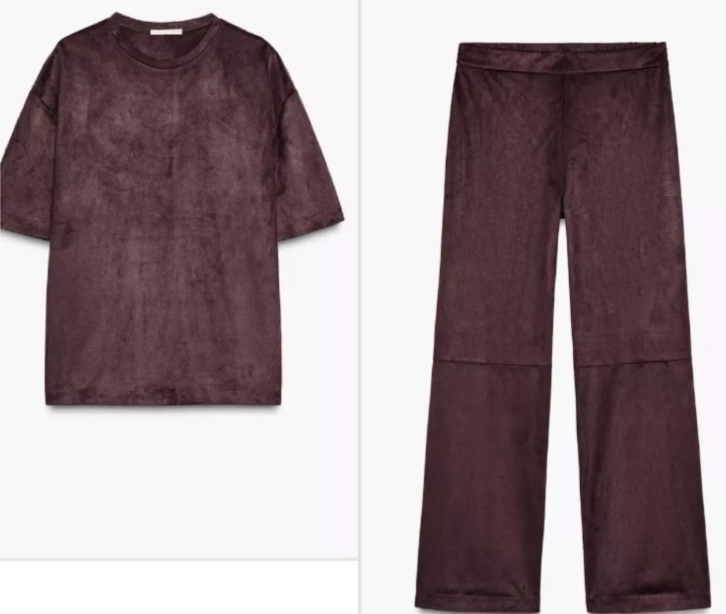 Zara faux leather effect set, including a top and wide-leg pants in a rich brown colour. Perfect for a chic, coordinated look!