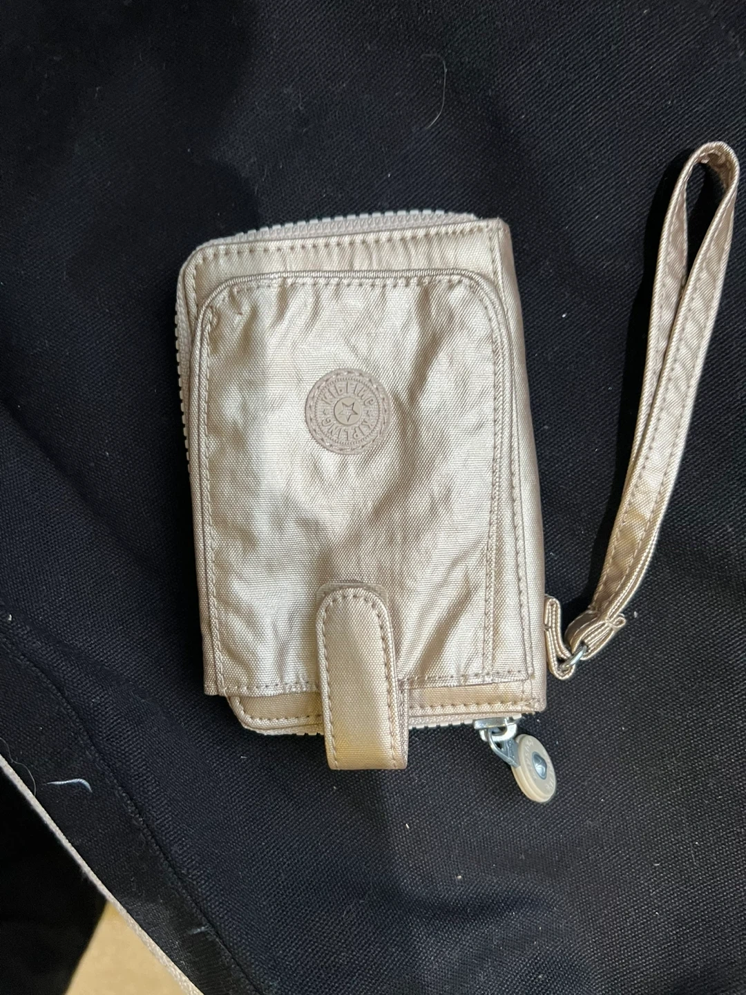 Selling a new cute Kipling wallet in a lovely metallic beige colour! It's in great shape and perfect for keeping your cards and cash organized. It has a zippered closure and a wrist strap for easy carrying
