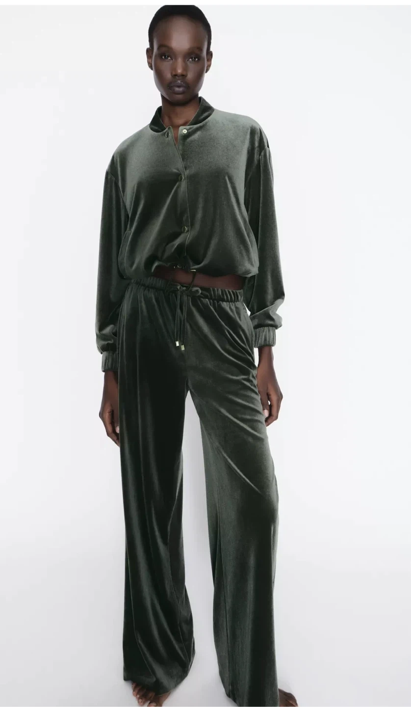 Selling a Zara velvet effect jogging set. It's a beautiful dark green colour Perfect for lounging or a casual day out!