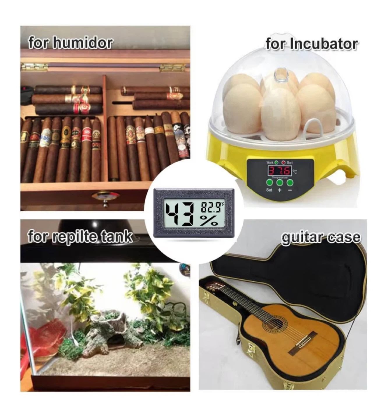 Mini size perfect to use in incubators, brooders, reptile tank, guitar case any other place that requires monitoring of temperature and humidity levels