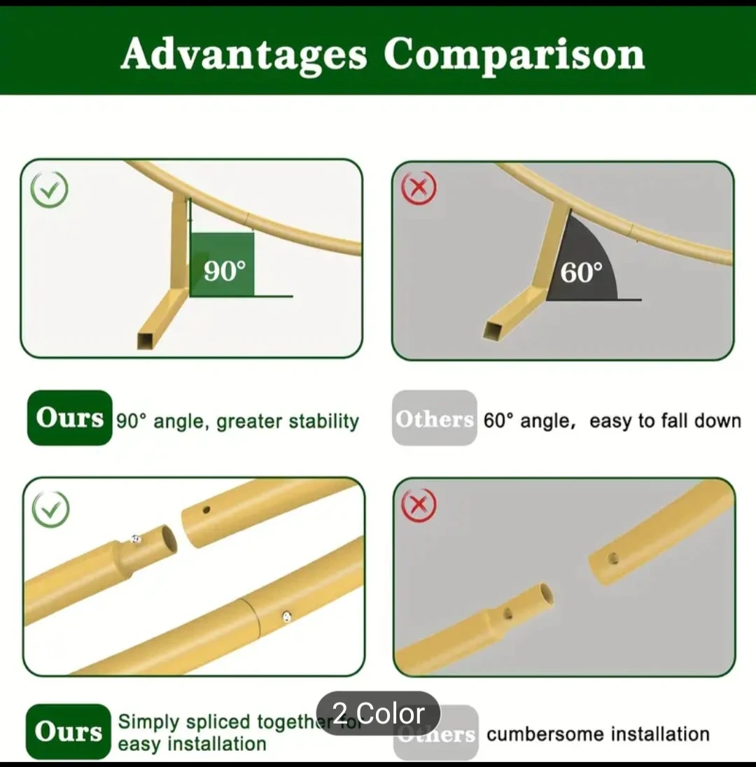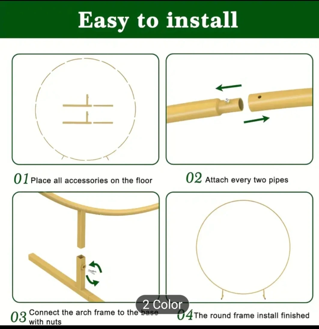 Spruce up any event with this golden round wedding arch backdrop stand! It's easy to install and disassemble, making setup and takedown a breeze. The 90° angle design provides greater stability, so you can decorate without worry. Measuring 8.2FT, it's the perfect size for creating stunning backdrops for weddings, parties, or any special occasion