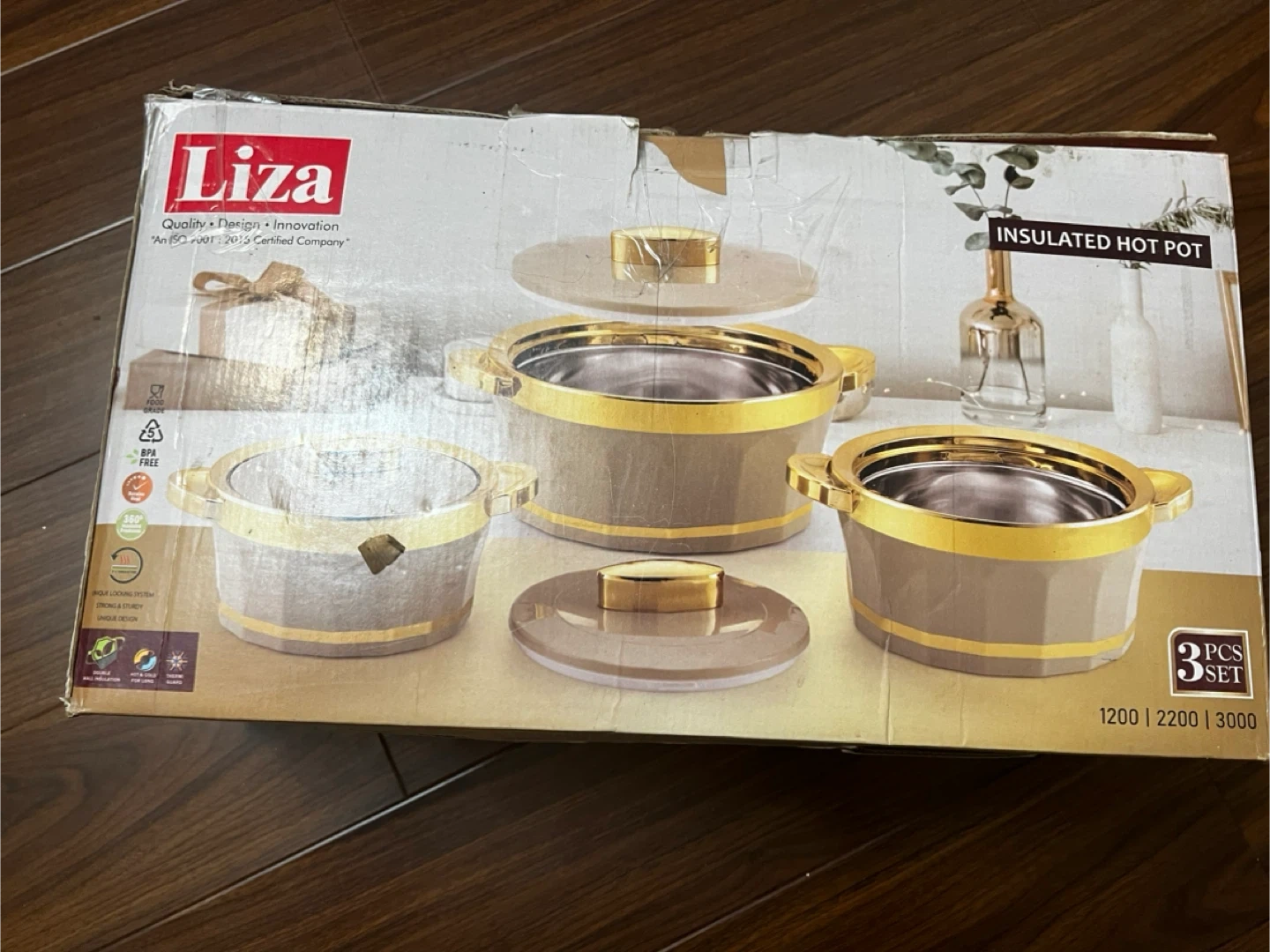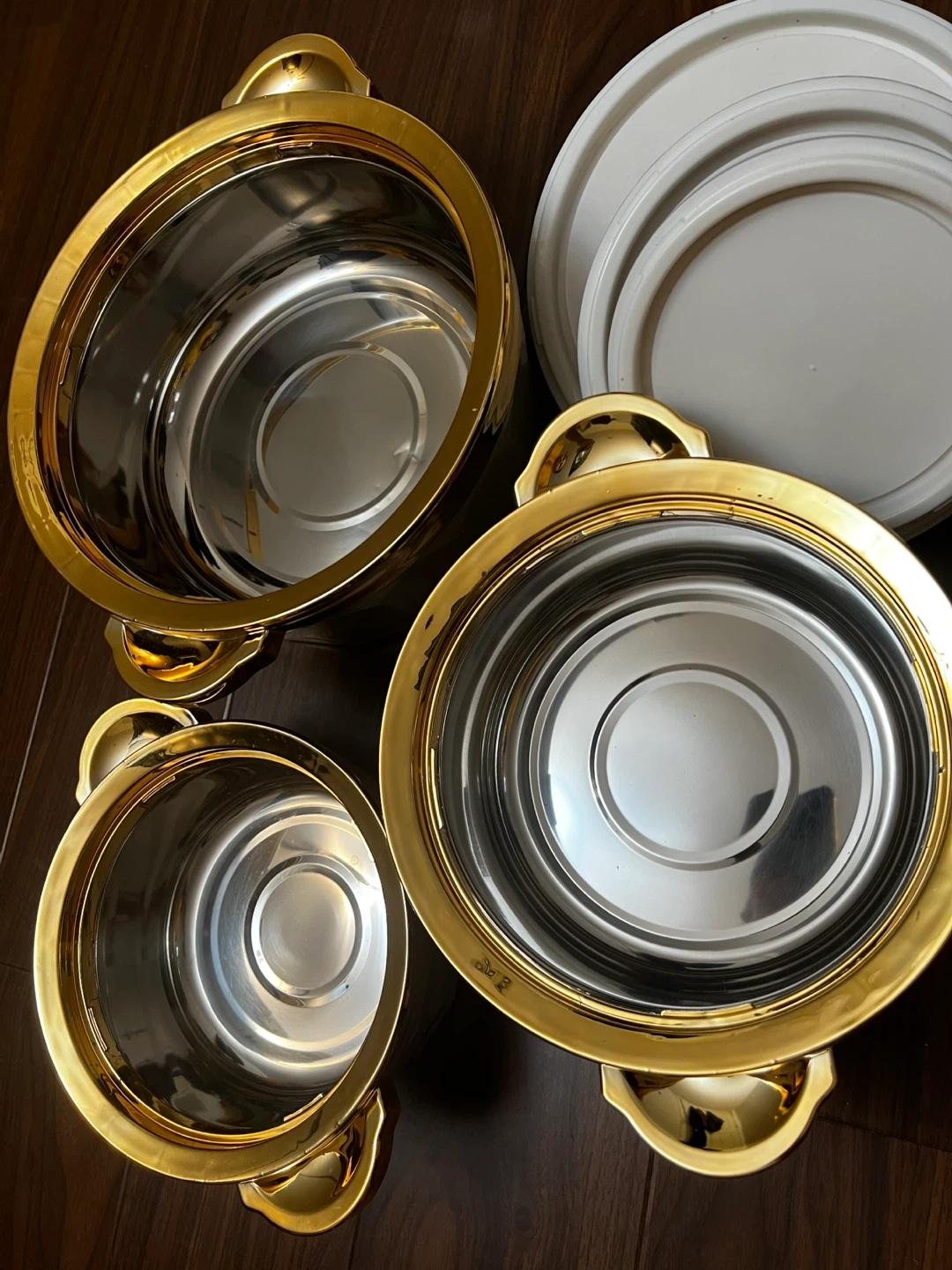 This set includes three pots in sizes 1200ml, 2200ml, and 3000ml. Perfect for keeping dishes at the right temperature during gatherings or everyday meals