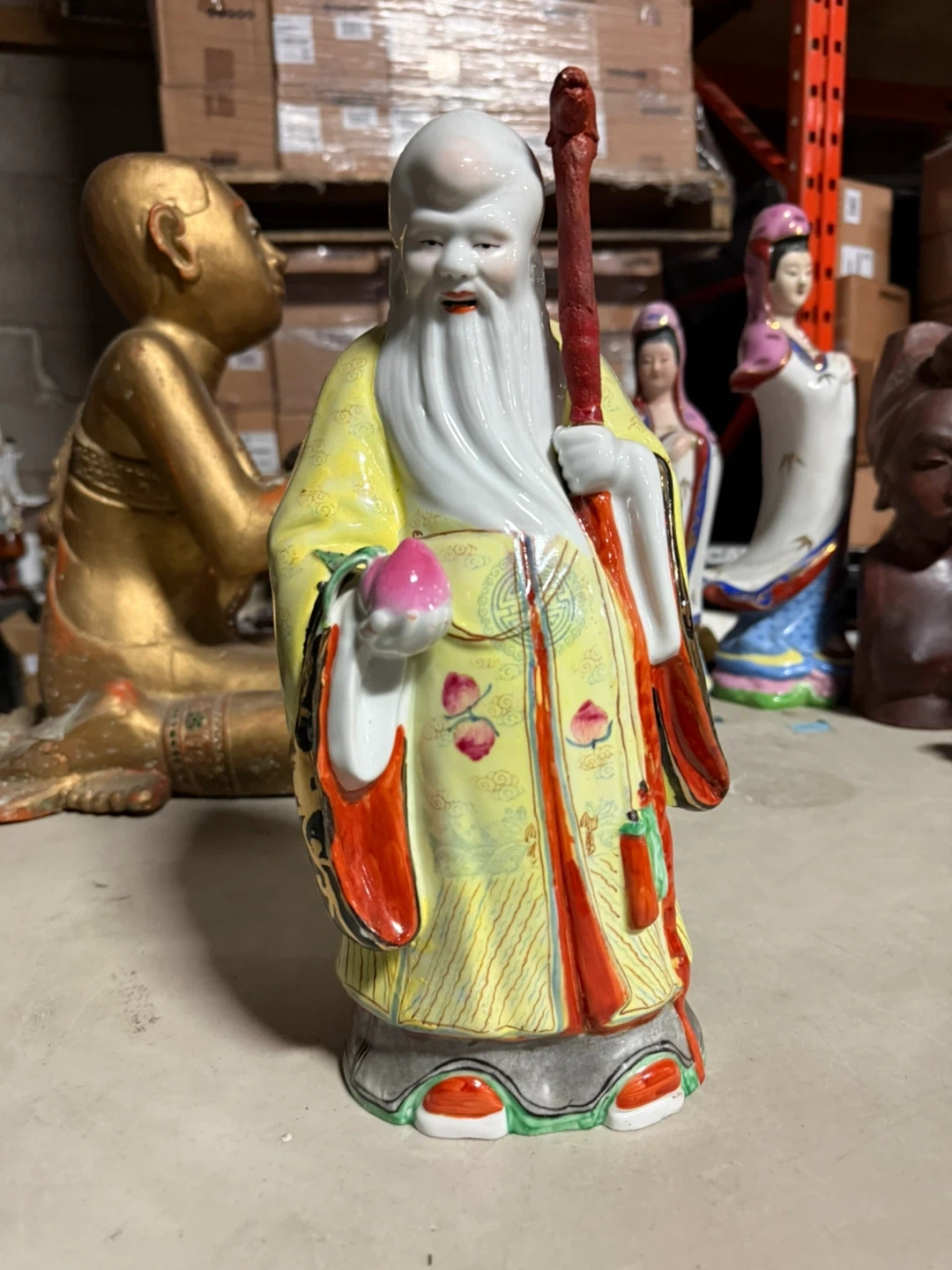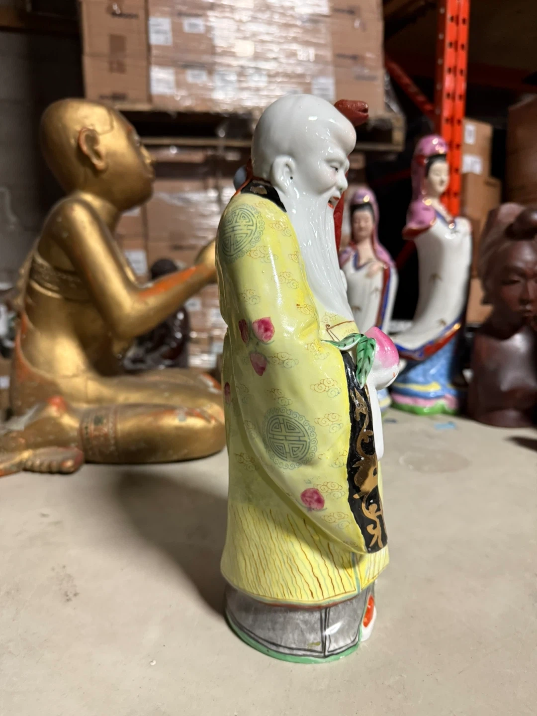 Selling a vintage ceramic figurine. It stands about 30cm tall and features intricate details and vibrant colours. A unique piece for any collector!