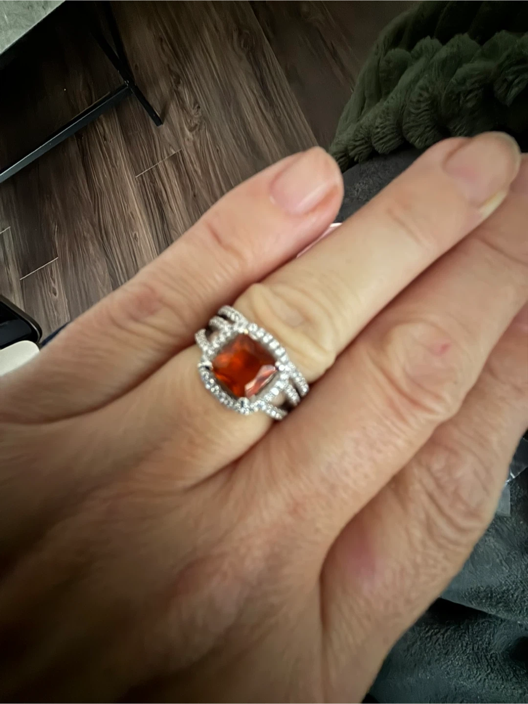 Selling a beautiful silver ring featuring a vibrant orange stone, it's a size 6. It comes in a cute pink box and is Brand NEW condition. Perfect for adding a pop of colour to any outfit! Great GIFT