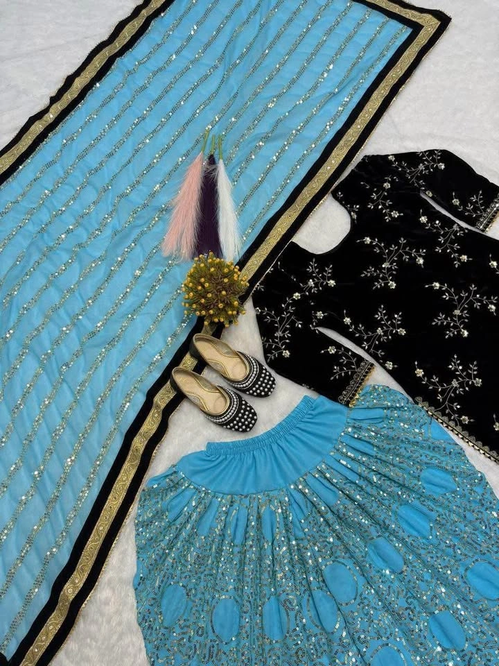 Top Fabric : heavy viscose Velvet With Heavy Embroidery 5mm Sequence Work With Sleeve