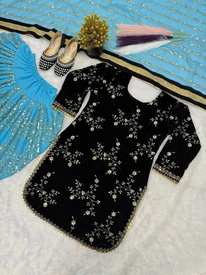 Black velvet suit with salwar