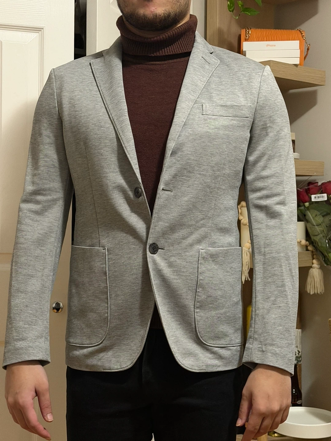 1000+Selling a casual blazer in a light grey colour. It's in great condition and perfect for adding a touch of style to any outfit. The blazer has a classic design with a two-button closure and functional pockets.