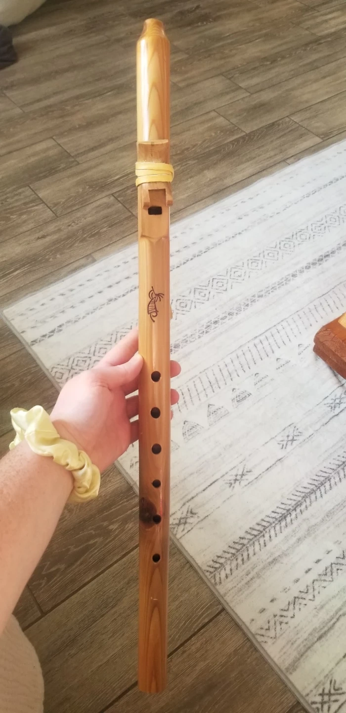 Selling a Native American style flute, it's in the key of E! It has a beautiful wood grain and a lovely, mellow sound. Perfect for beginners or experienced players alike