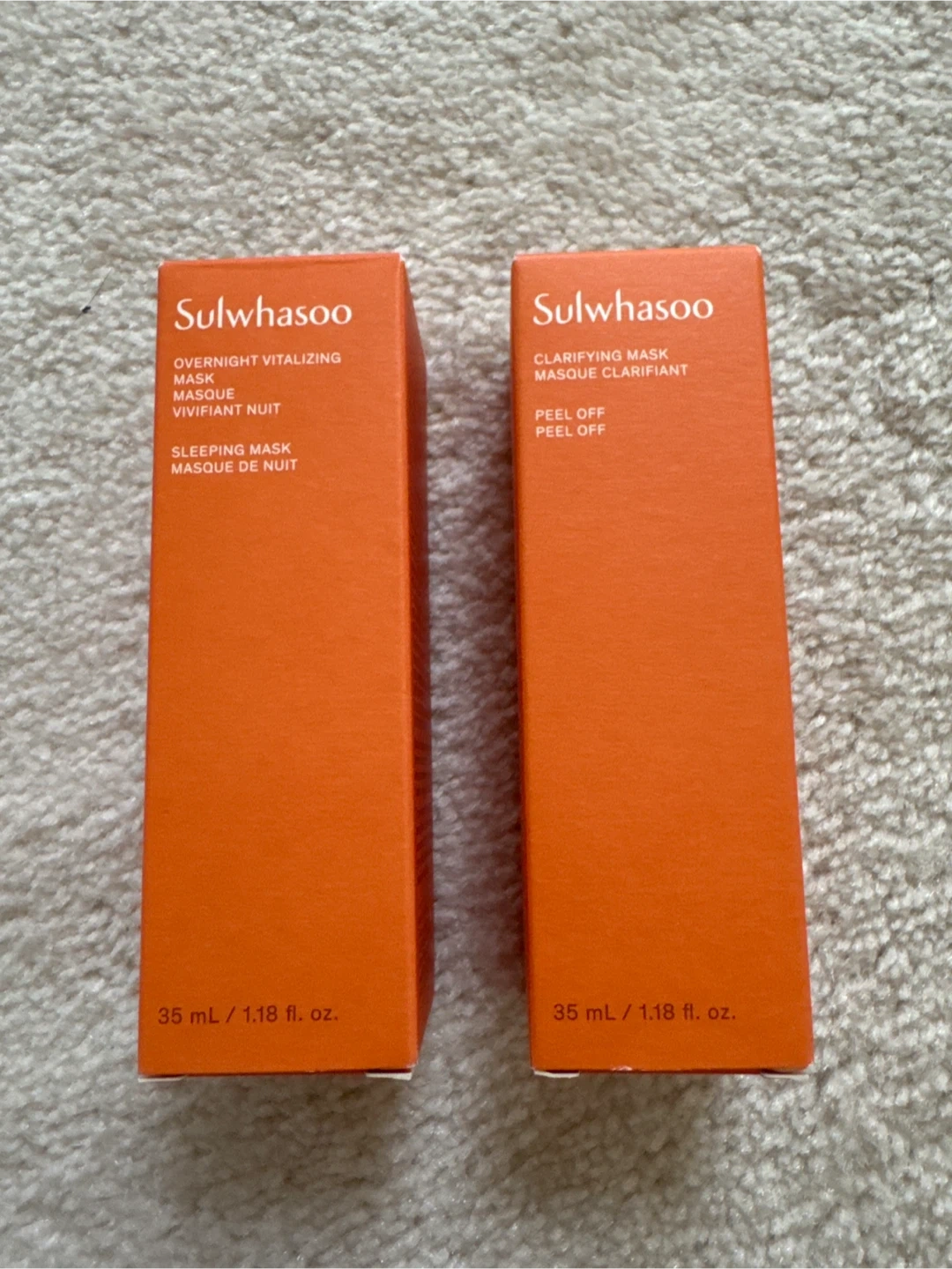Selling a set of Sulwhasoo masks, including the Clarifying Mask and the Overnight Vitalizing Mask! Both are 35 ml / 1.18 fl oz.