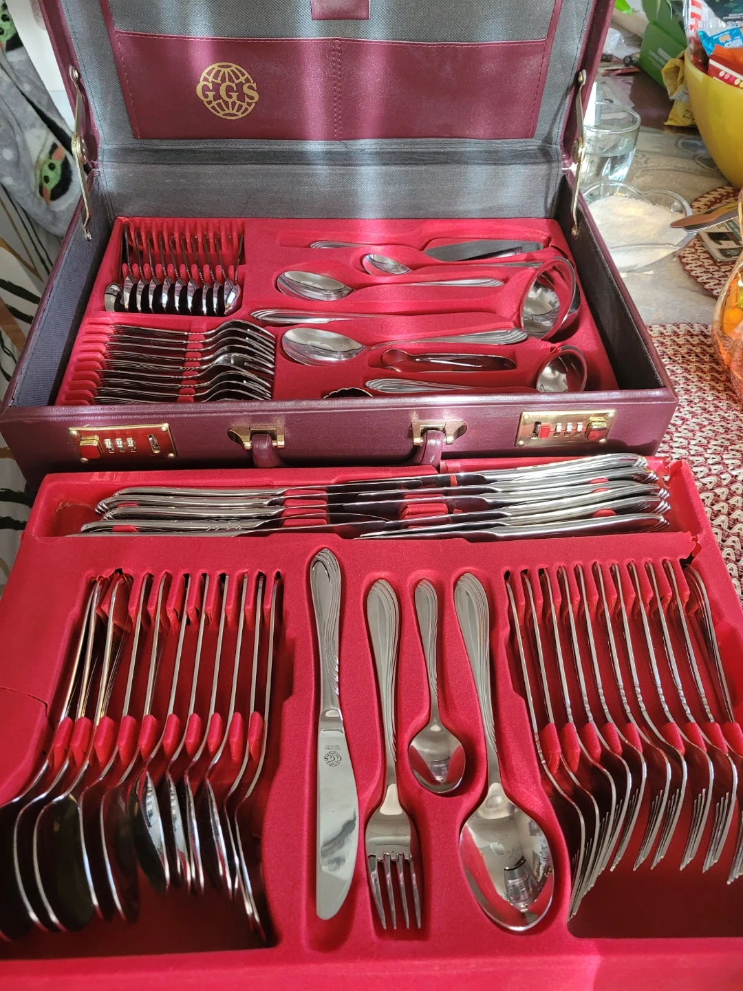 Selling a complete GGS stainless steel cutlery set, neatly organized in its original case. This set appears to be in great condition and includes everything you need for a full table setting. Perfect for everyday use or special occasions!