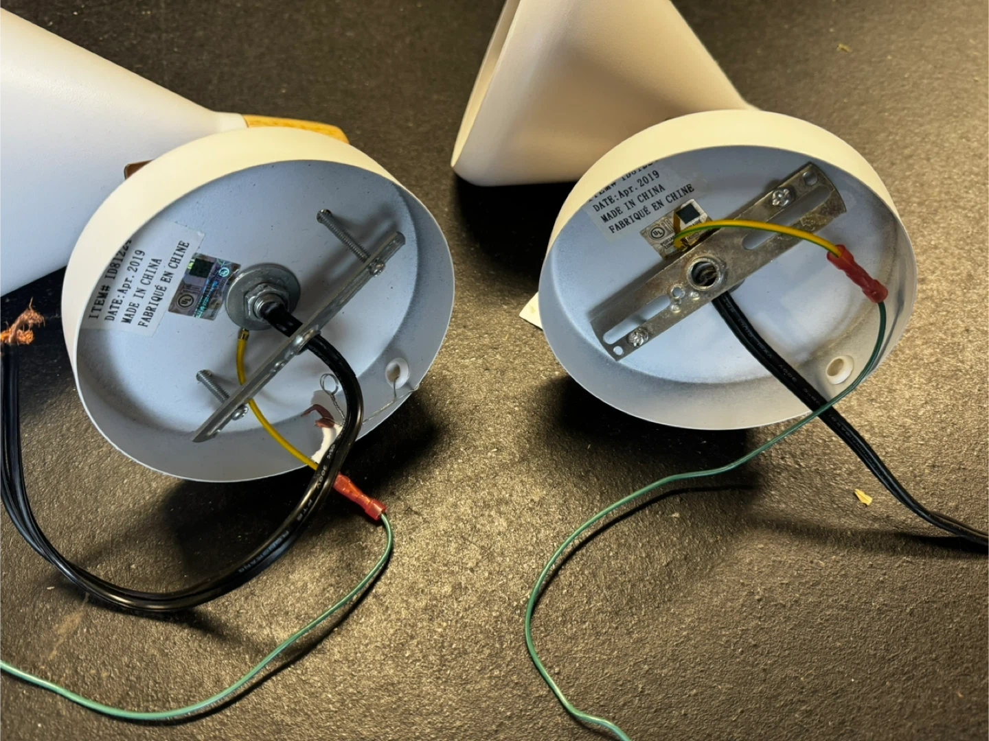 Selling a set of two wall sconces! They feature a white metal shade and a wooden accent piece. They're in great shape and would look great in any room