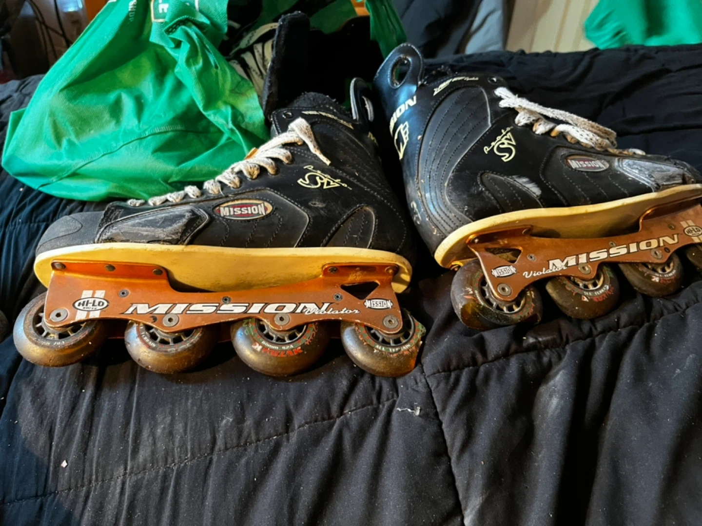 Selling a pair of Mission inline skates, size 11 They show some signs of use, but are still in good condition for skating around!