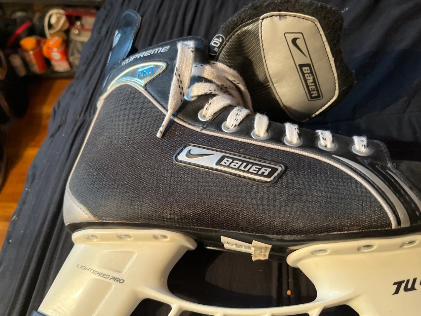 Brand New Nike Selling a pair of Bauer Supreme Pro ice skates in size 10. They're in good condition and ready for the rink! There brand New come with skate Garza