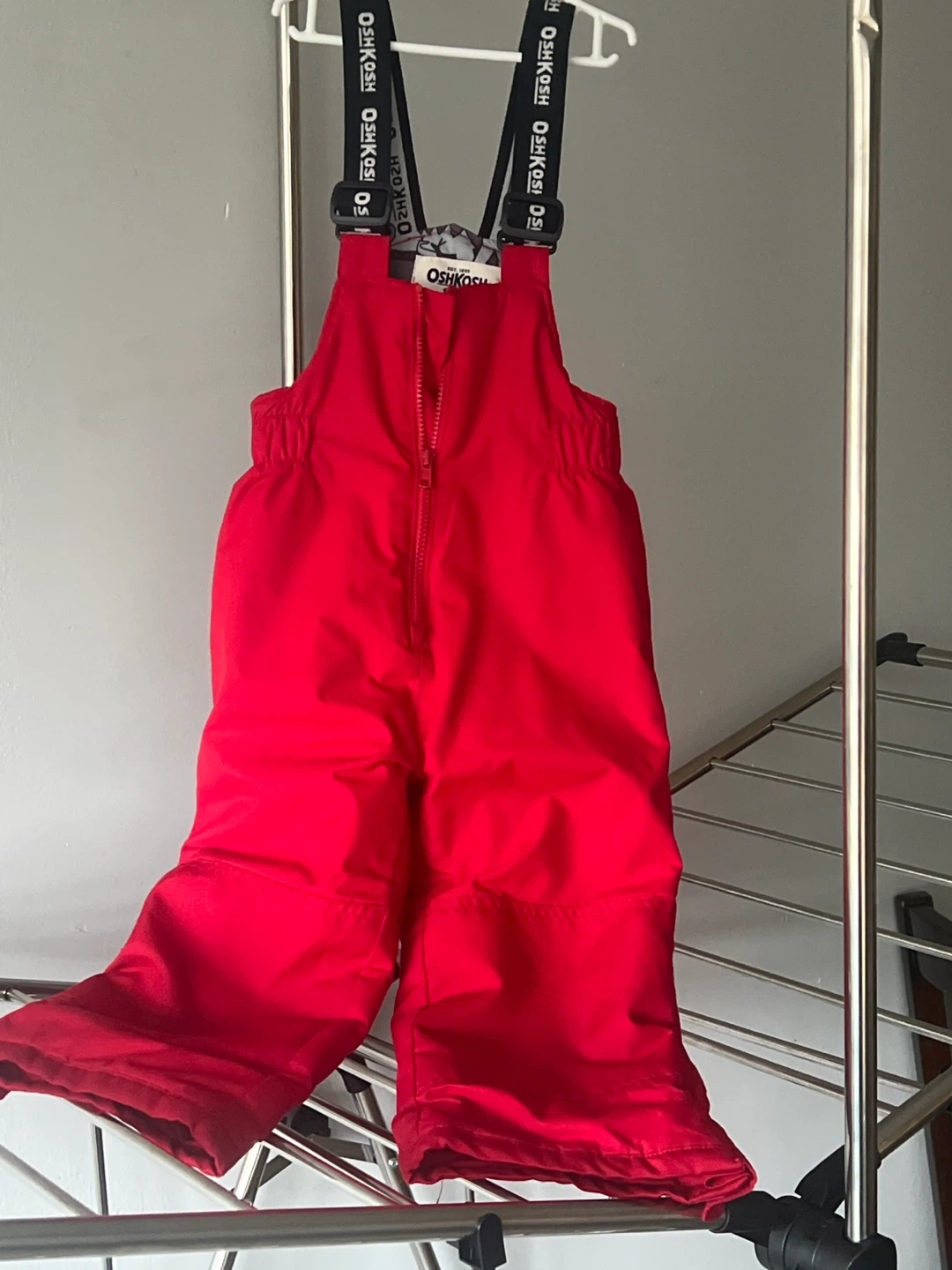 Selling a cute OshKosh B'gosh winter set for kids! The set includes a jacket with a fun mountain and deer print and bright red snow pants. Perfect for keeping your little one warm and stylish this winter season!