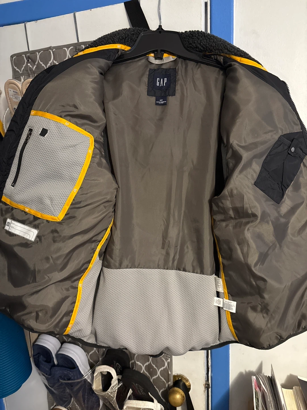 Selling a gently used GAP black puffer vest in size SMALL . It's in great condition and perfect for layering during the cooler months. Has a cozy sherpa-lined collar!