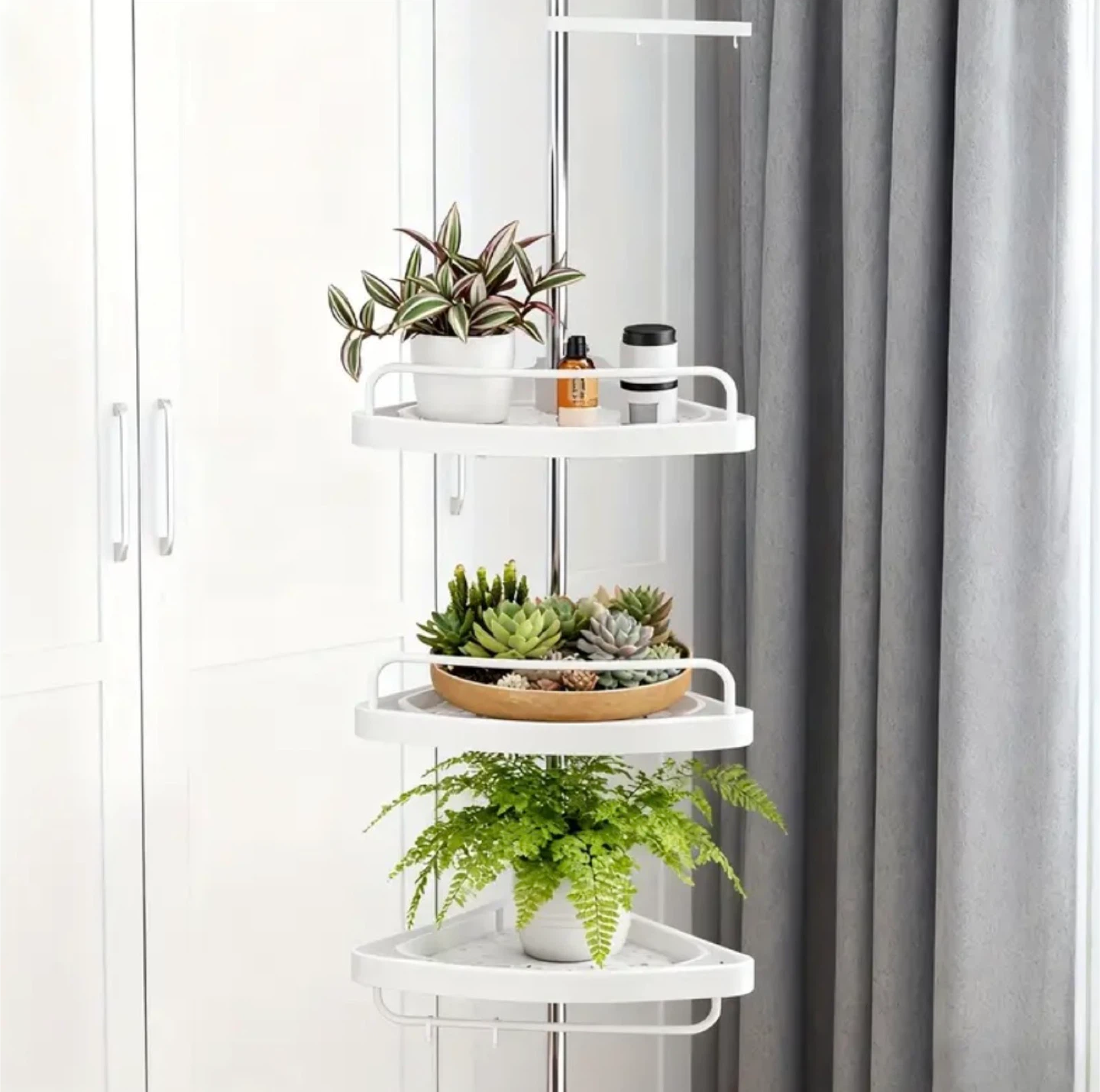 Selling a corner shower caddy in white. It's a great way to organize your shower essentials and maximize space! Easy to install and adjust to your desired height.