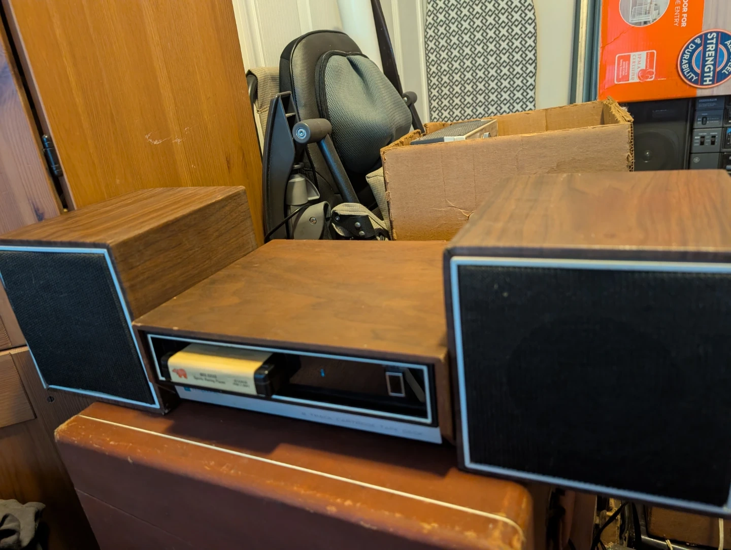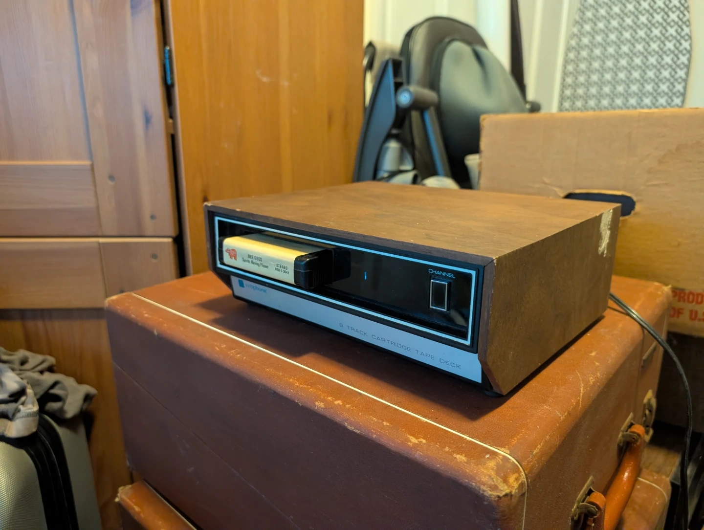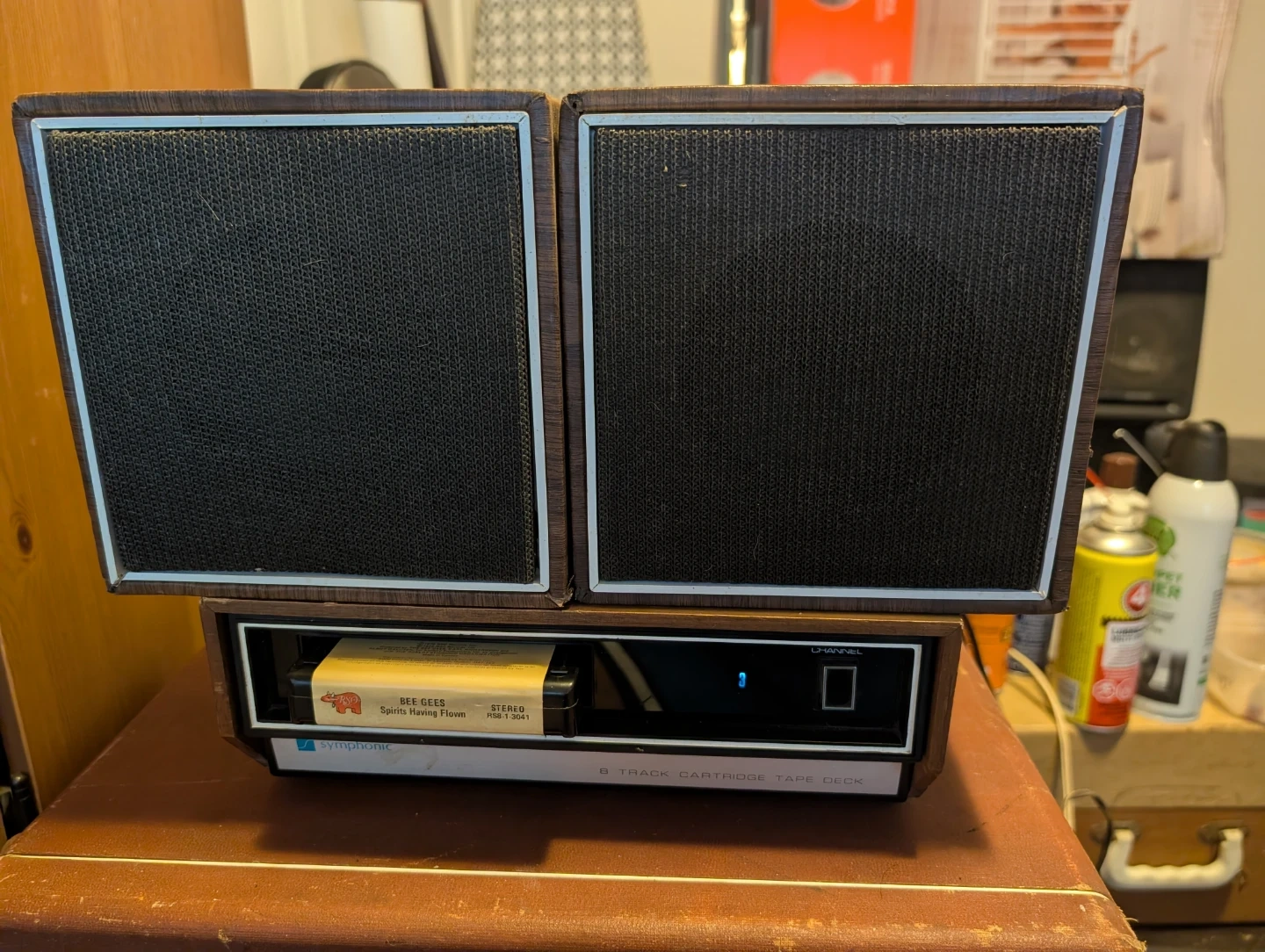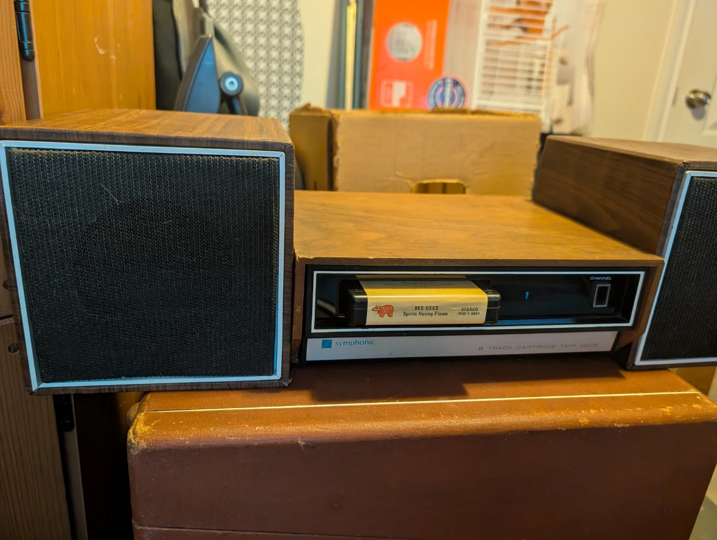 Selling a Symphonic 8 Track Cartridge Tape Deck with speakers. It's looks good, turns on, tack changes. and you can hear the tape spinning but does not play might need to clean the head.. the speakers are part of the set.
