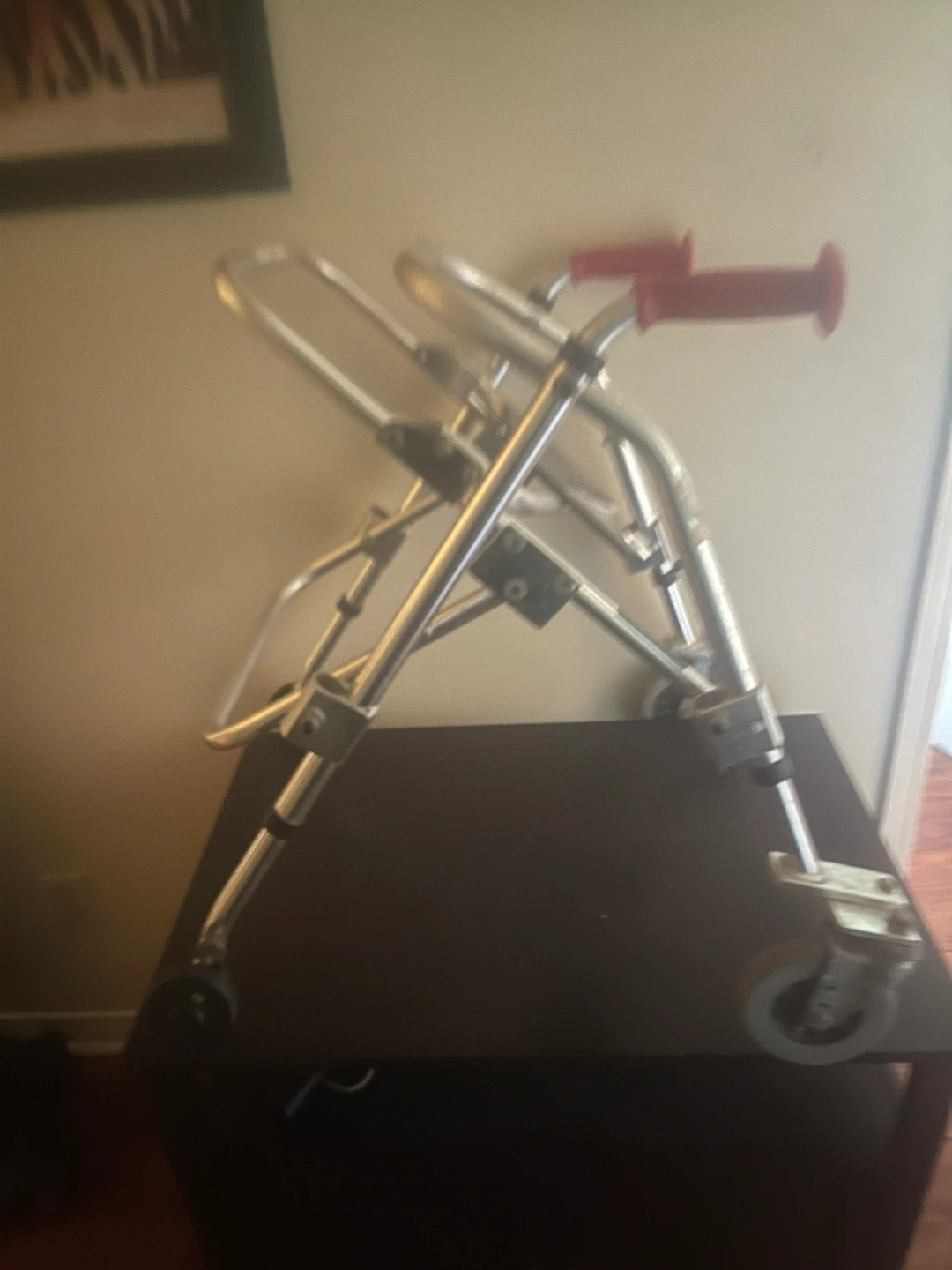 Selling a used silver walker. It has some signs of wear but is still in good working condition. Great for anyone needing a little extra support!