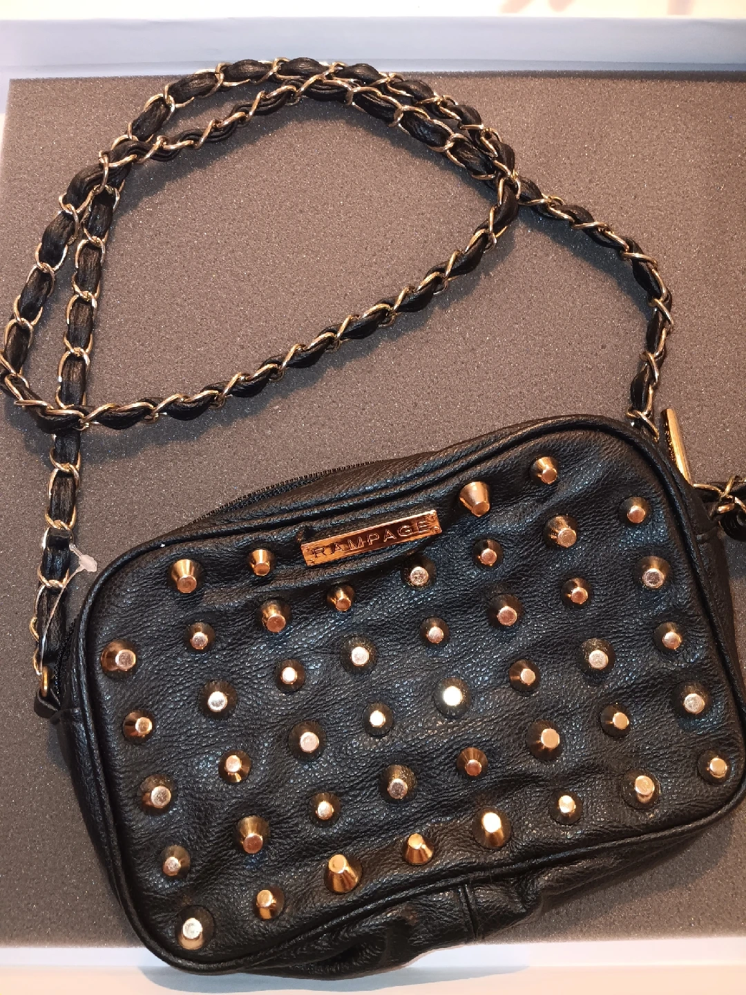 Selling a Rampage crossbody bag in black! It has a studded design and a chain strap. It's in great condition and perfect for adding a little edge to your outfit