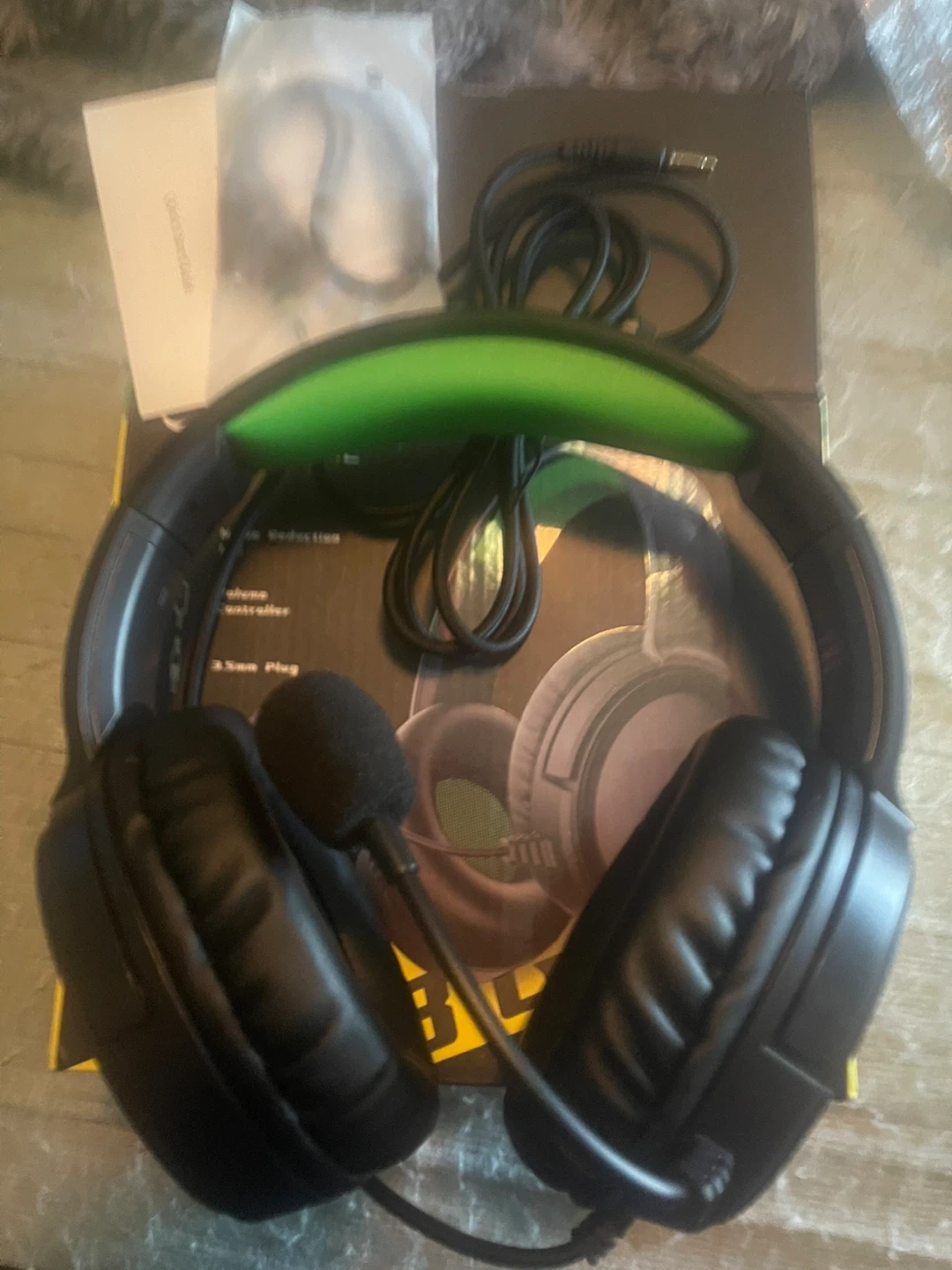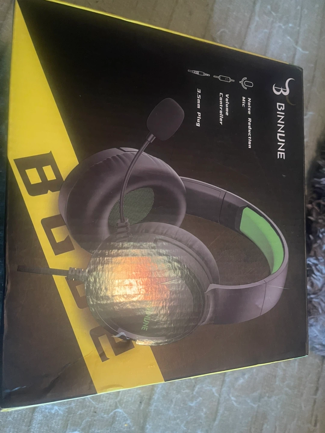Selling a BINNUNE BG02 gaming headset in excellent condition! Designed for Xbox Series X|S, it's compatible with Xbox controllers. The headset features titanium-coated diaphragms for added clarity and a unidirectional boom mic for improved housing and pickup. It also has in-line audio controls and cross-platform compatibility with PS5, PS4, Pro, Switch, PC, and mobile devices with a 3.5mm connection. Included is the original box and accessories