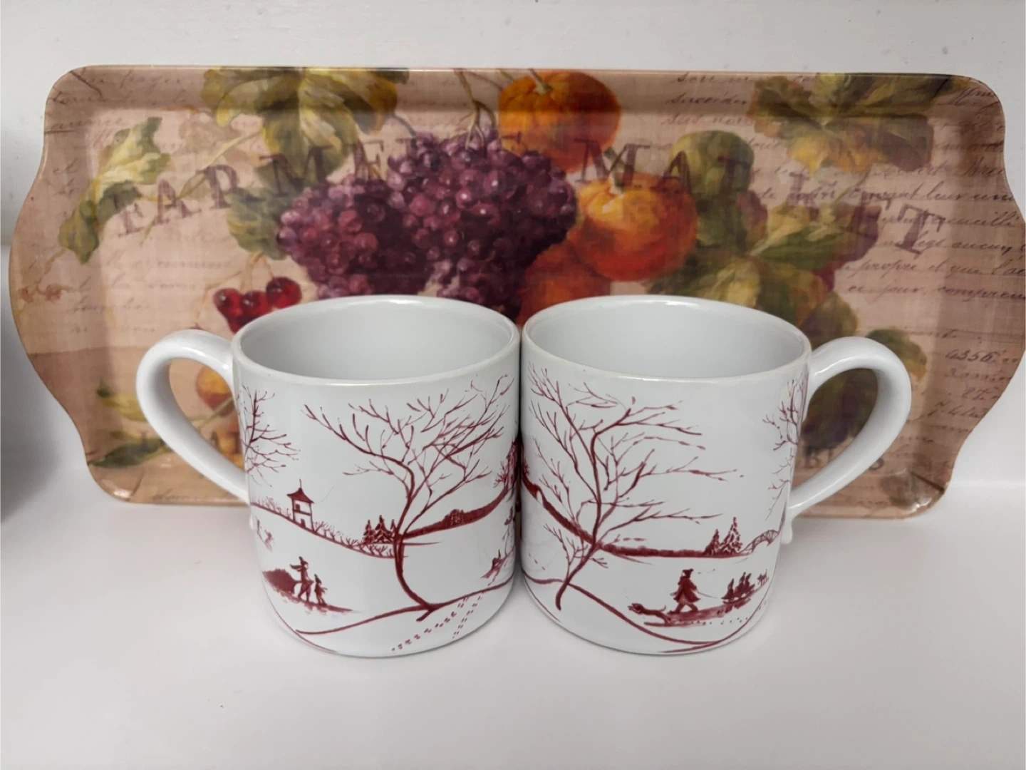 Juliska winter frolic 12 oz ruby mugs - set of 2