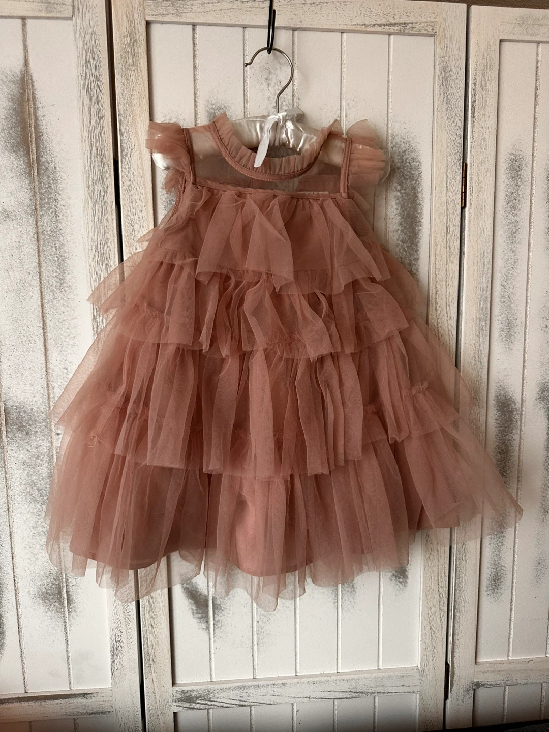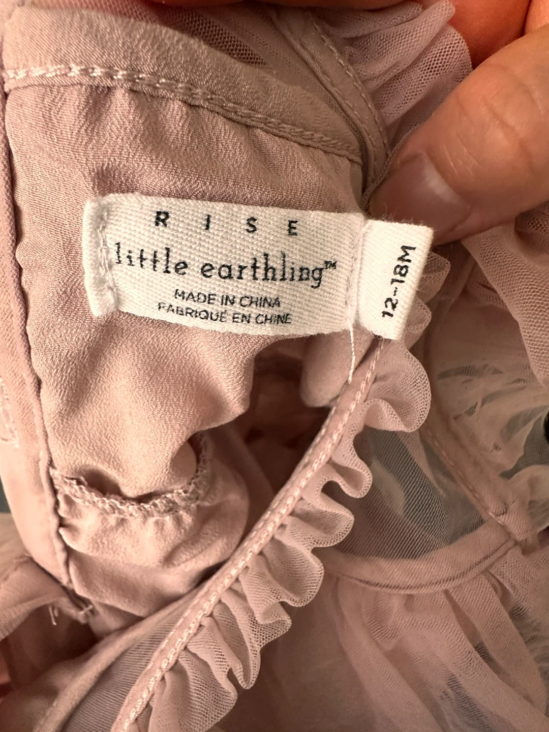 A very cute Little Earthling dress, perfect for a special occasion! It's in excellent condition and features a layered tulle design in a lovely blush colour. The size is 12-18 months.