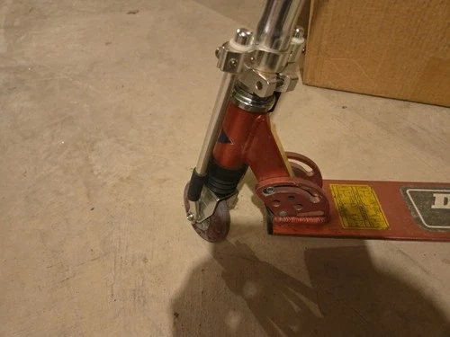A simple children's scooter. It's a little wobbly, but it still works. Might be hard to adjust.