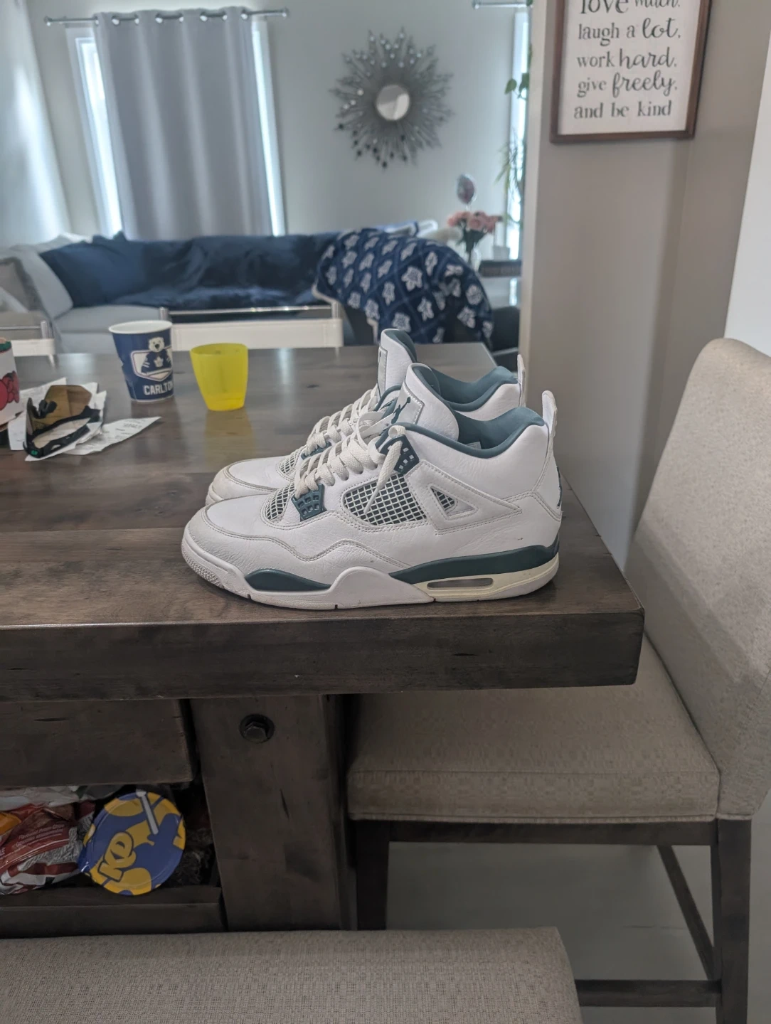 Selling a pair of Air Jordan 4 Retro in the Seafoam Green colourway. These are in great condition and ready for a new home!