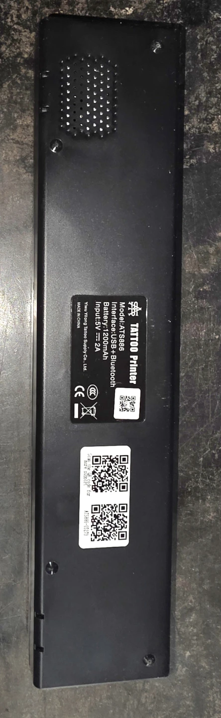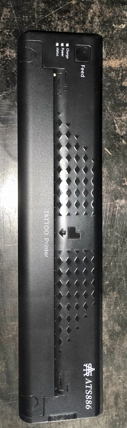Selling a TATTOO ATS886 Tattoo Printer. It's a portable printer with USB and Bluetooth interface. The battery is 1200mAh with an input of 5V and 2A. Comes with its original pouch!