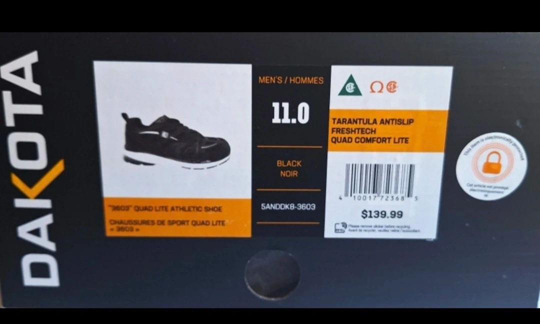 Crafted for both protection and comfort, the Men's 3603 Dakota Quad Lite Athletic Shoe Tarantula Antislip Freshtech size 11 is a steadfast choice for those in need of reliable footwear. With its unique Tarantula Antislip design, the shoe offers enhanced traction to keep you steady on your feet. The CSA Grade 1 safety standards ensure that your feet are safeguarded against workplace hazards, making it an ideal pick for industrial environments. Dakota's commitment to quality is evident in every stitch, ensuring that your feet are wrapped in durability. The breathable materials used in these shoes promote a comfortable fit throughout the day, allowing you to focus on the task at hand without any foot-related distractions. Whether it's a long day at work or an active weekend, these shoes are designed to keep pace with your demanding lifestyle.