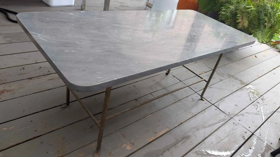Effortless sophistication, inside and out. Blur the lines between your living room and your patio with the Rhys coffee table. It floats a generous slab of cool grey marble atop a warm, architectural brass base, transitioning seamlessly to anchor any seating area with understated elegance.
