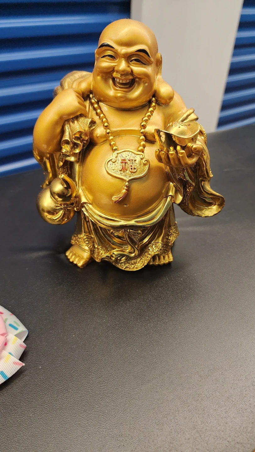 67A lovely golden Buddha statue to add a touch of serenity to your space! It's in great condition and features intricate detailing