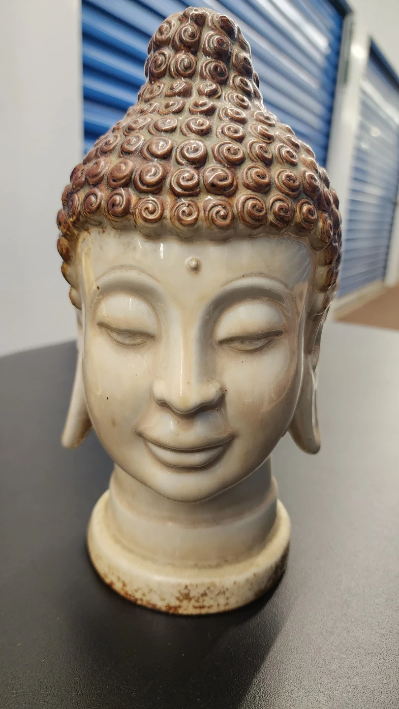 67Ceramic Buddha head for home decor. There are some signs of wear on the base.
