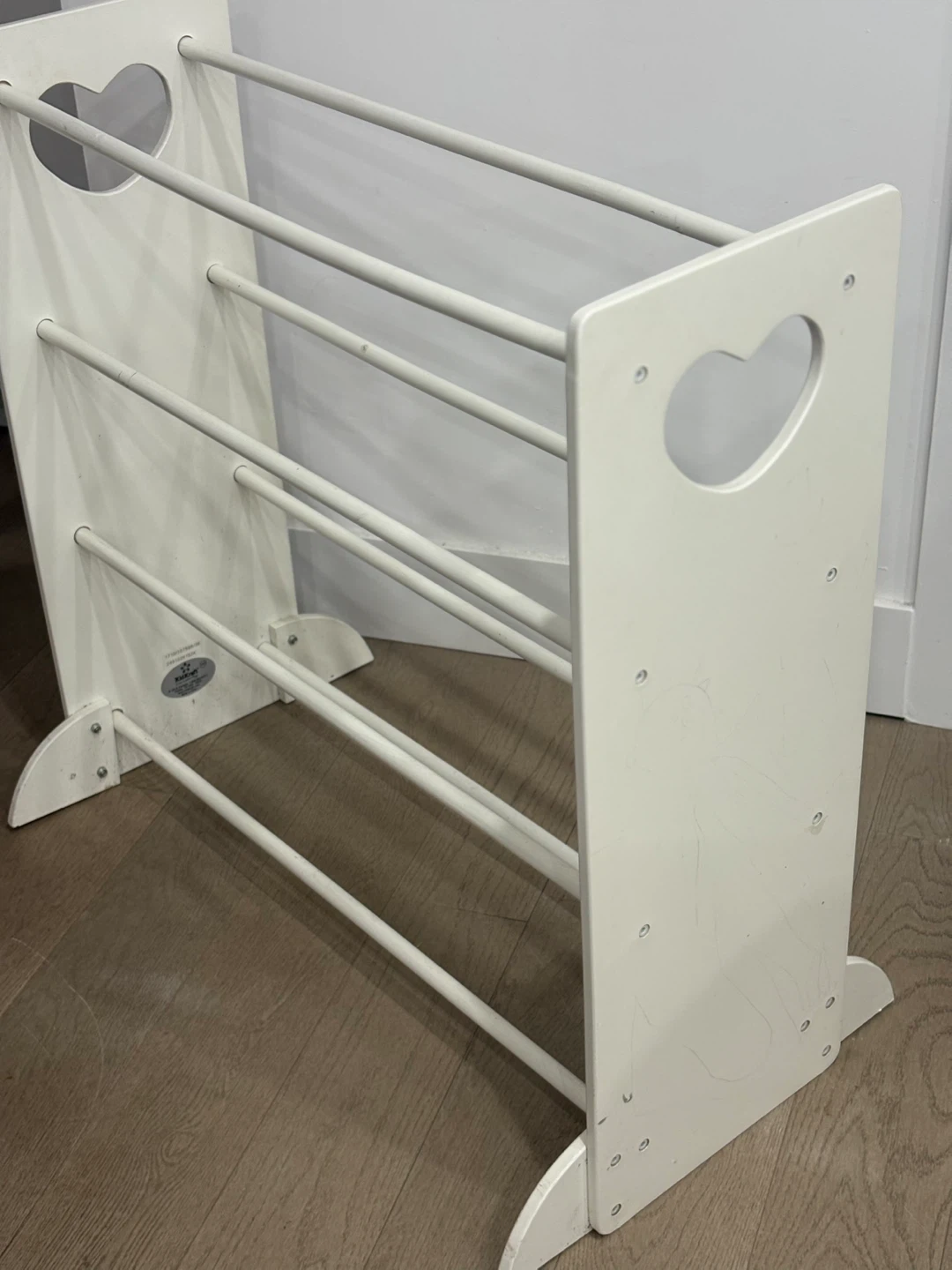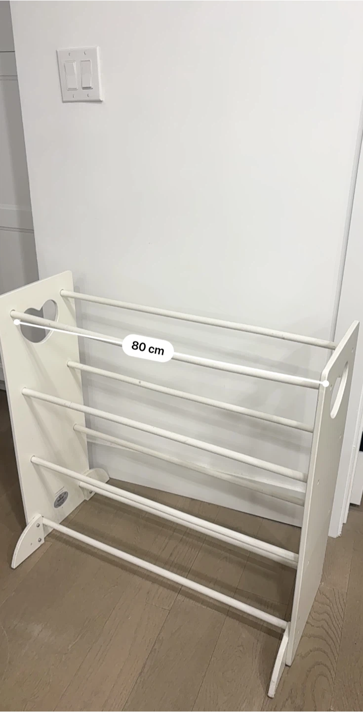 Selling a cute white children's book rack! It's in great shape and perfect for organizing your little one's books. The rack is 80cm wide and 29cm deep, making it a great size for any room