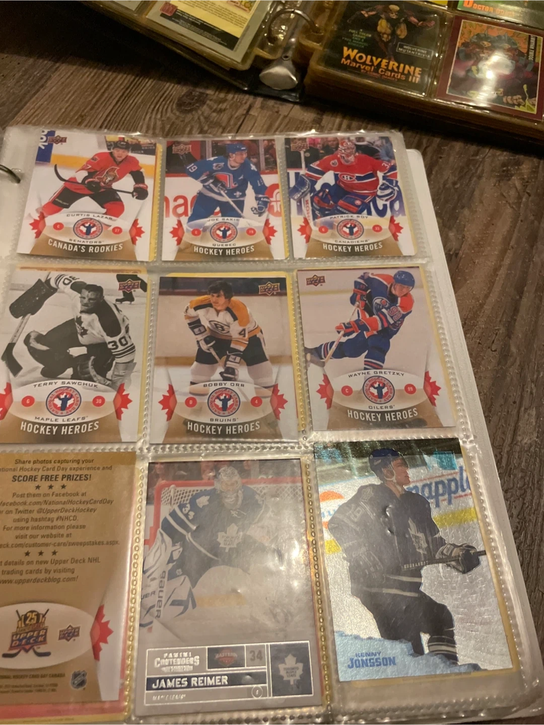 Selling a large collection of mixed sports and comic trading cards. Includes hockey, baseball, basketball, wrestling, and comic cards. Great for collectors or anyone looking to start a new hobby!