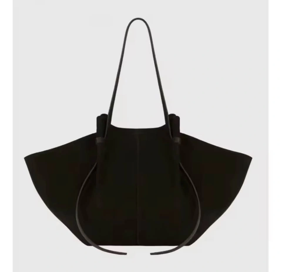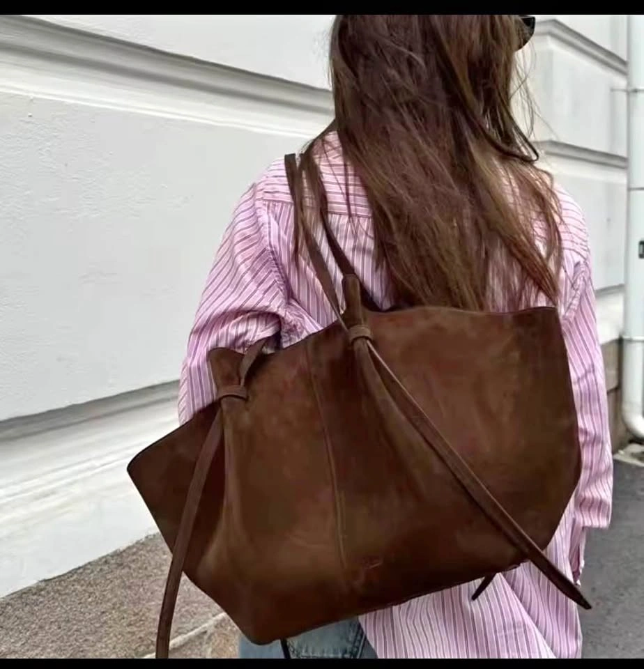 This is the perfect blend of style and practicality! This beautiful tote features a fashionable "wing" or flared design, giving it a designer look, and is made from a soft, sanded suede-style leather that feels premium. It is a true large-capacity bag, ideal for work, travel, or everyday use.