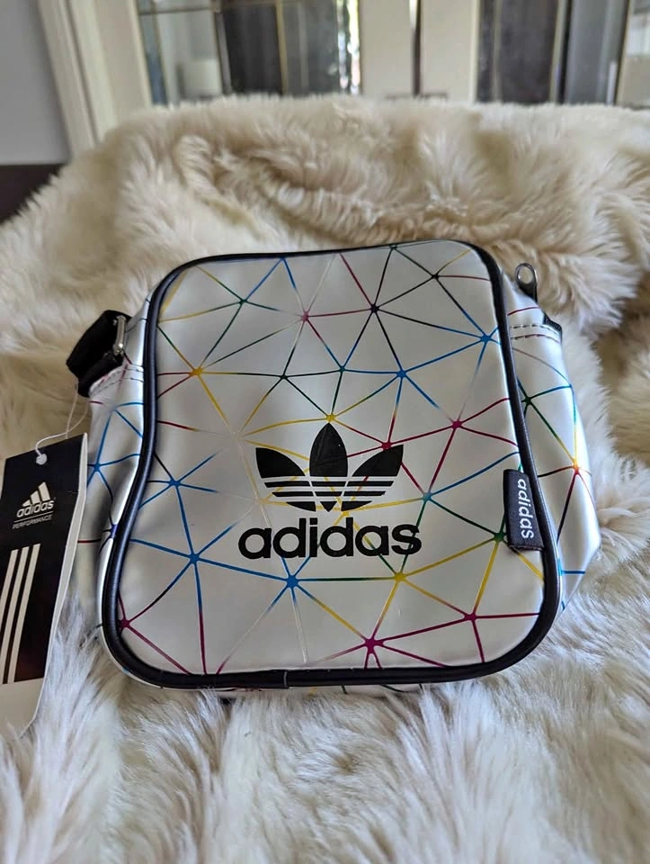 🩶Adidas Silver Crossbody Bag – Colorful Design | Spacious & Styl