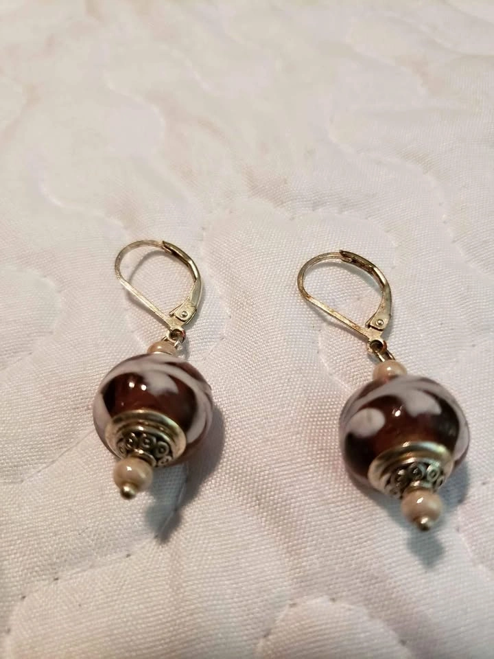 Glass Eggplant coloured earrings-if it's up, it's available