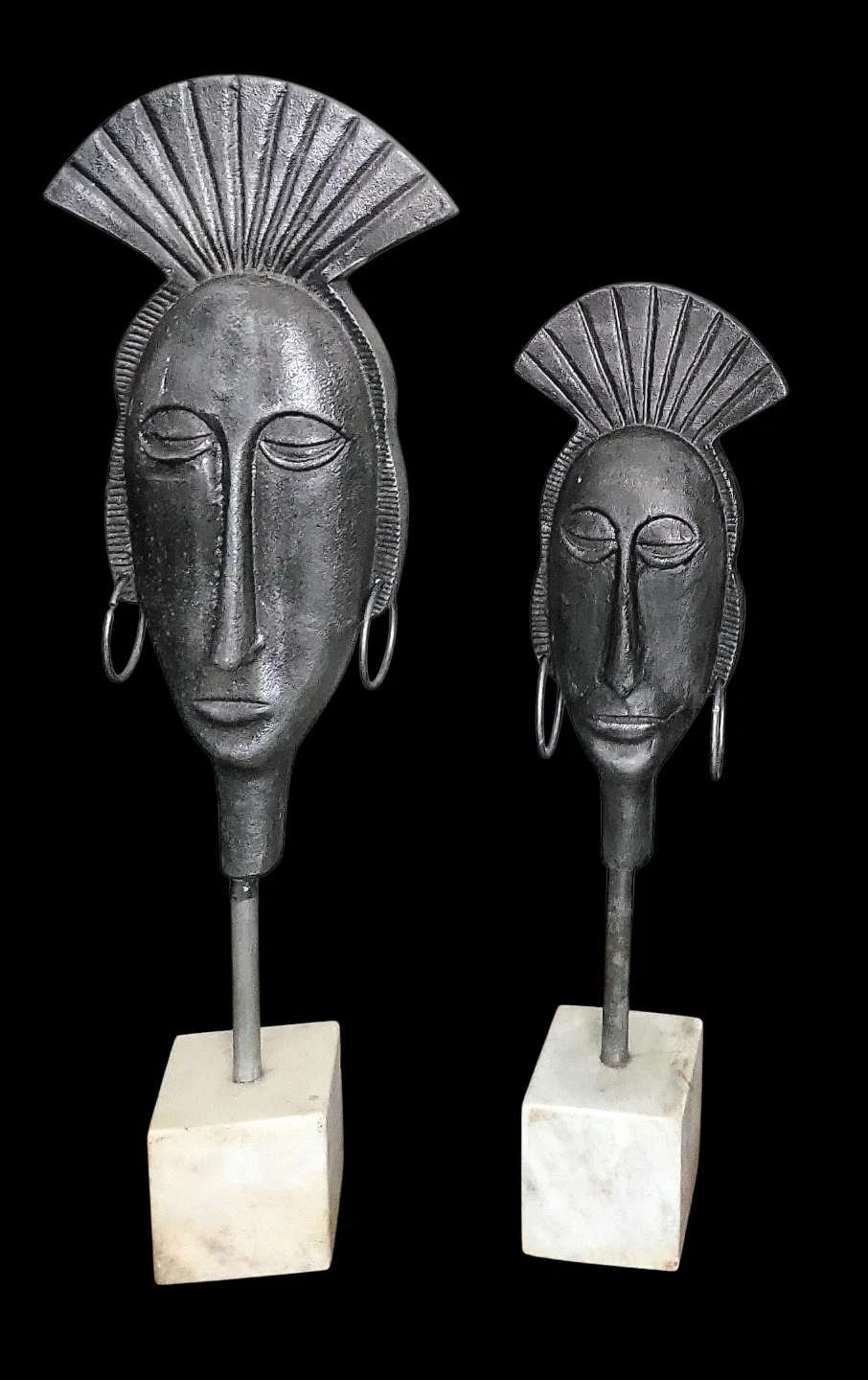 Pair of Decorative Metal AfricanFace Sculptures