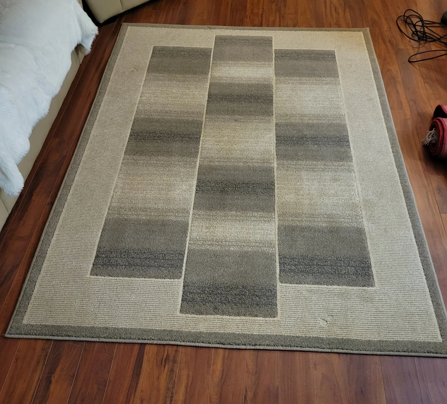 Gently used area rug in neutral tones. It's in great condition and would look great in any living space! Dimensions 63" 90". In great condition.