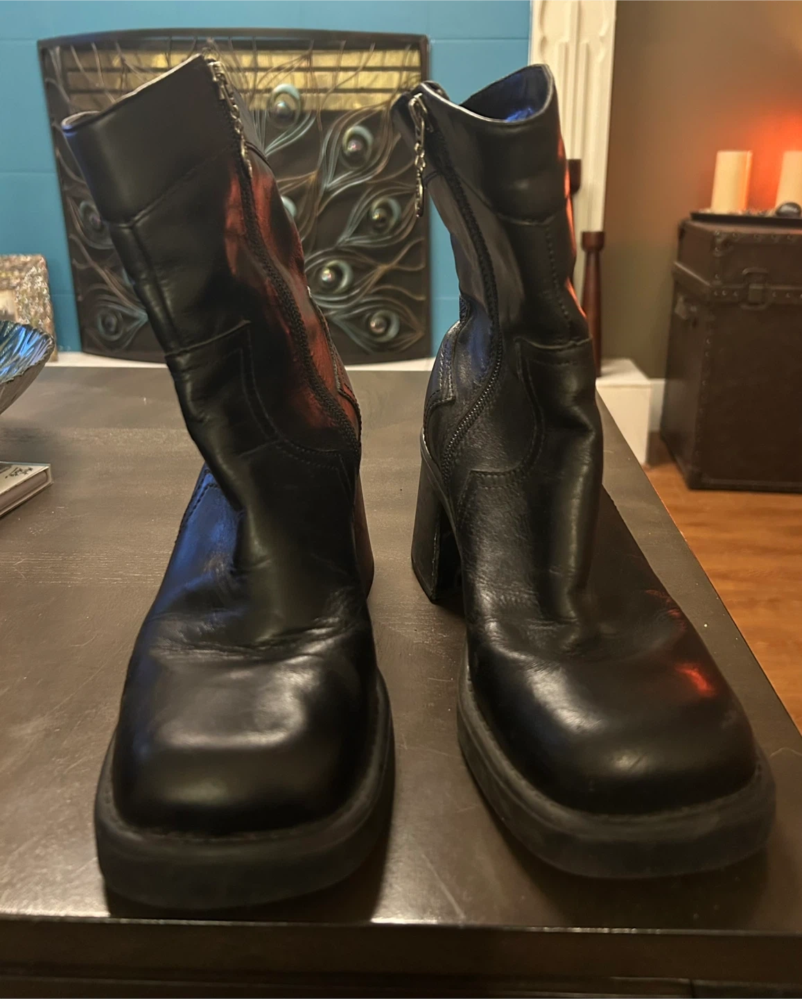 73You'll be the only one to own such boots, handmade, all leather, very vintage. Authentic. Square toes and 70s heels. Like new