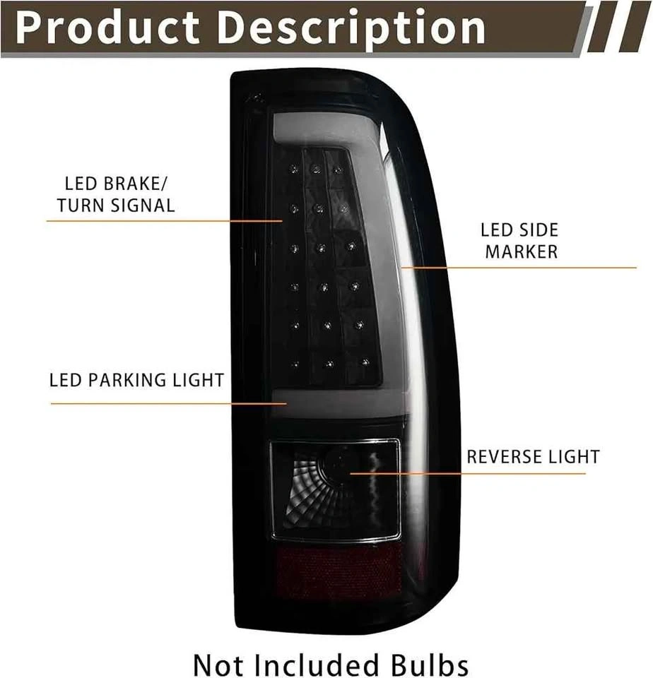 These tail lights are made of high-quality ABS plastic with a clear black lens, resistant to wear, corrosion, and humidity.
