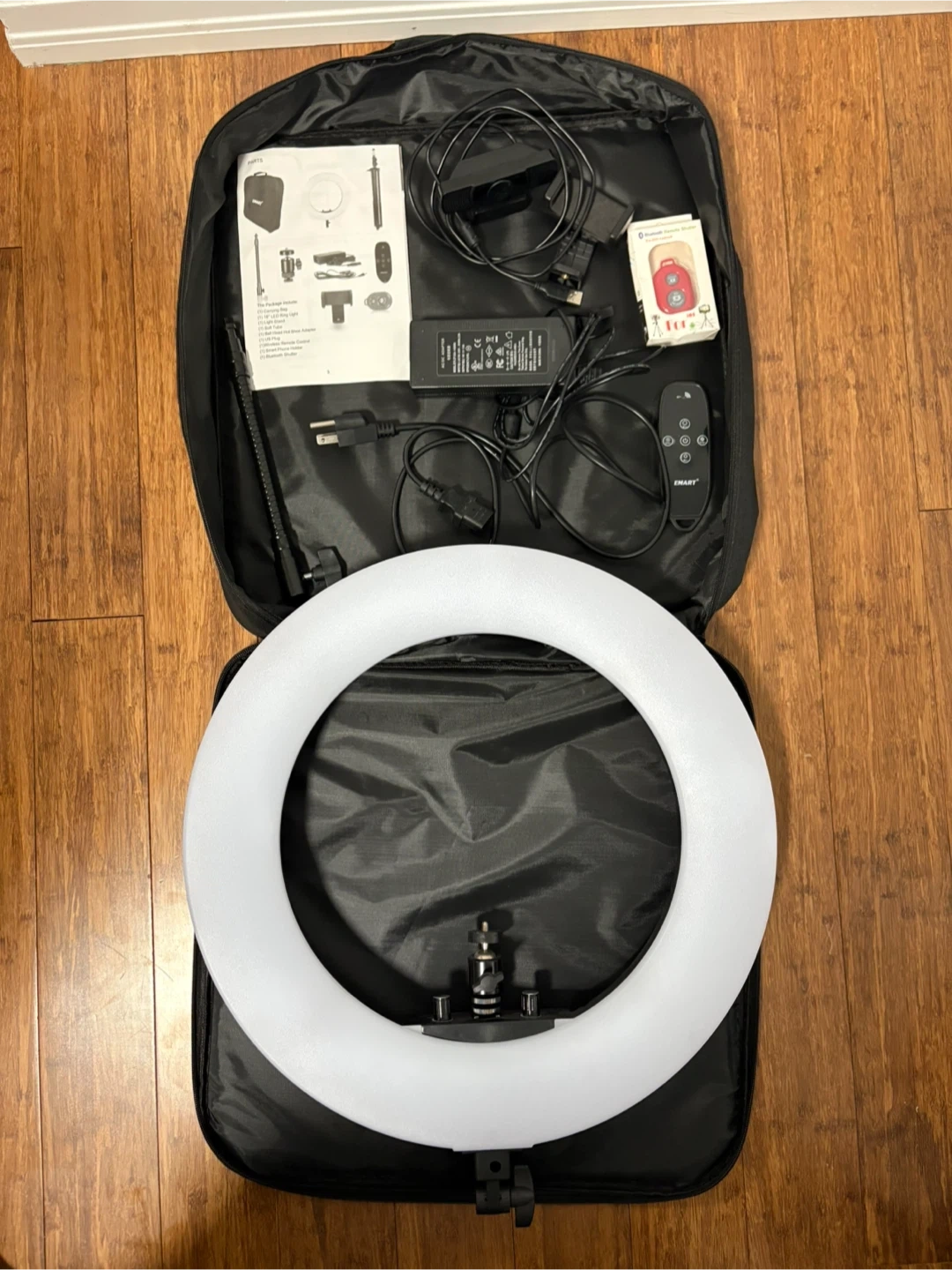 Selling an Emart 18" LED Ring Light! It comes with a light stand, carrying bag, and all the accessories you see in the photos. This includes:
