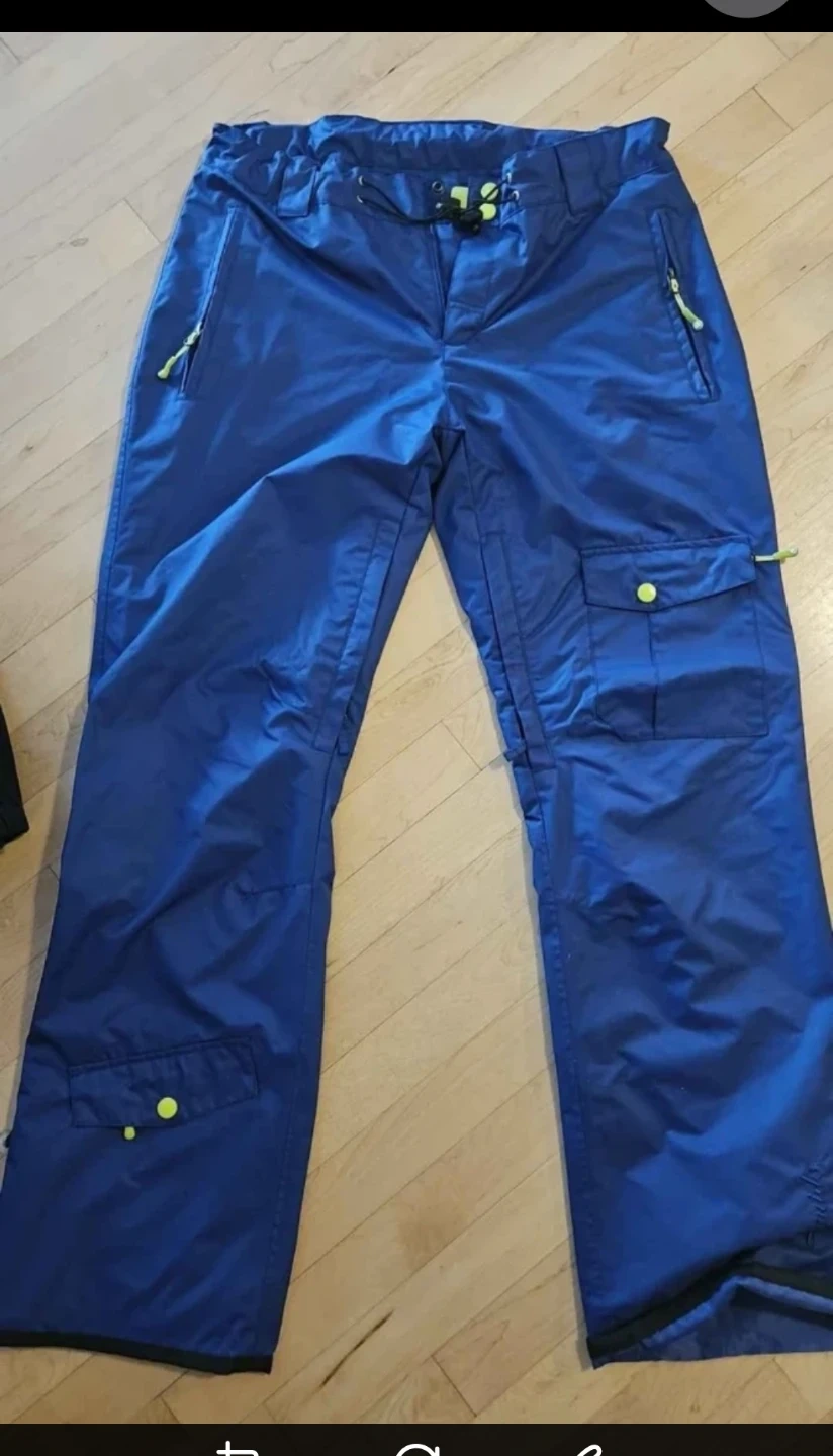 Selling a Liquid snow jacket and pants set. The jacket is black with yellow-green accents and the pants are blue with matching yellow-green accents. Great for hitting the slopes this winter!
