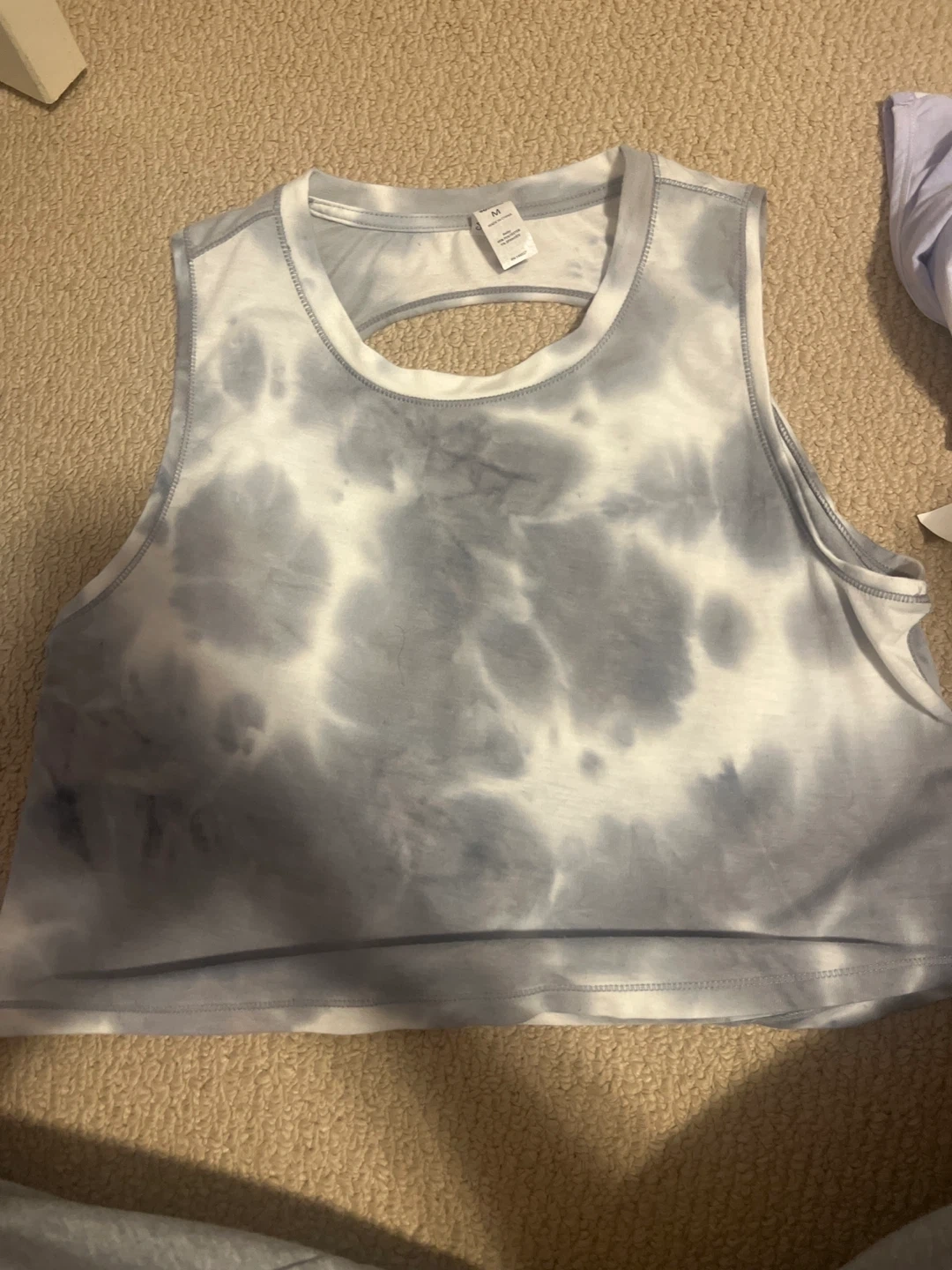 Selling a Lululemon dupe tank top in a cool tie-dye pattern! It's a size 6 and in great condition. Perfect for workouts or just casual wear