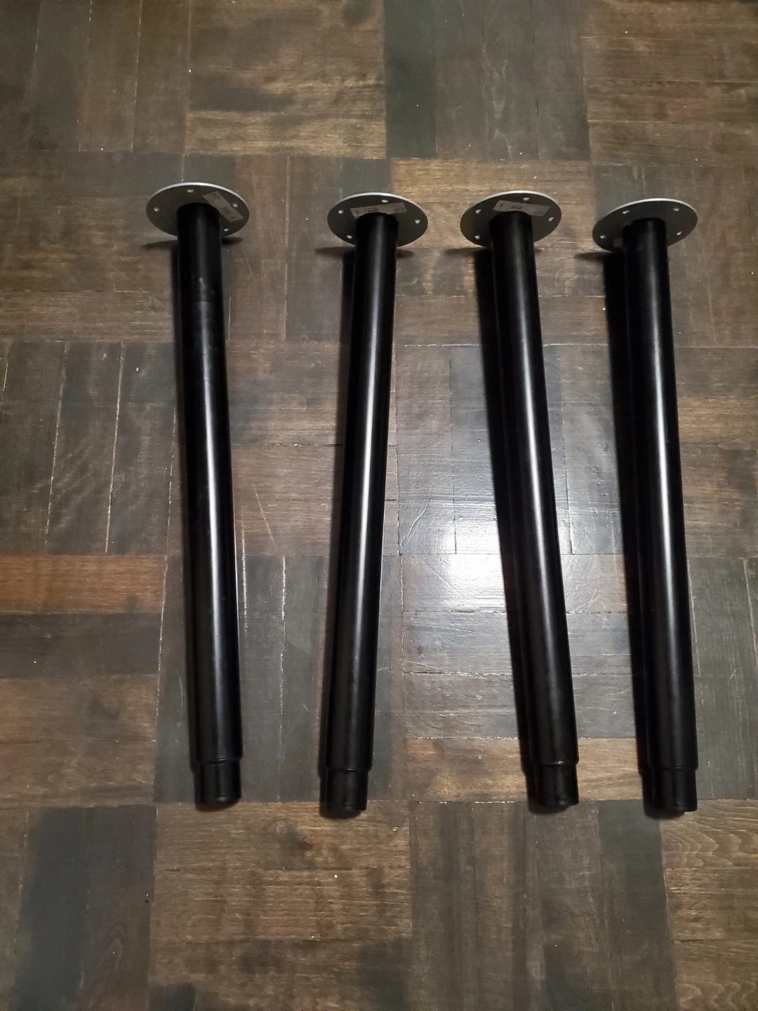 Selling a set of four IKEA OLOV adjustable table legs in black. These legs are perfect for creating a custom desk or table setup. They're adjustable from 60-90 cm (23 5/8 - 35 3/8 "). The top plate is 11 cm (4 3/8 ") in diameter.