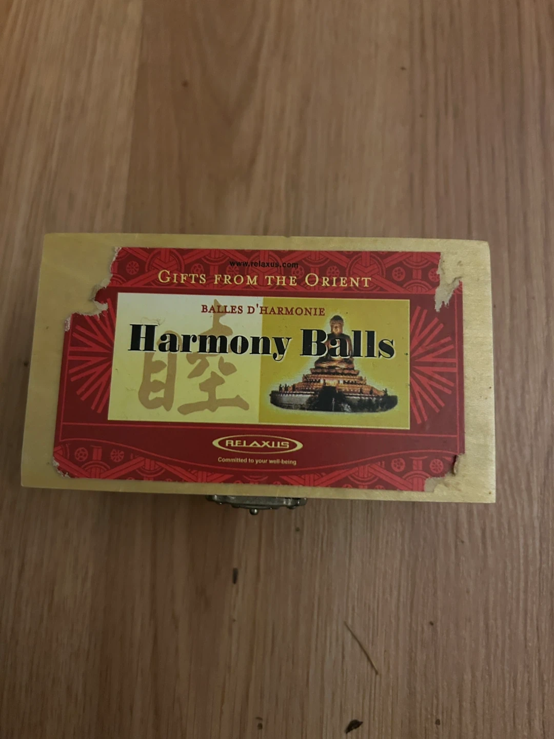 Selling a set of Relaxus Harmony Balls. They come in a wooden box. These balls are meant to promote relaxation and well-being through the soothing sound.