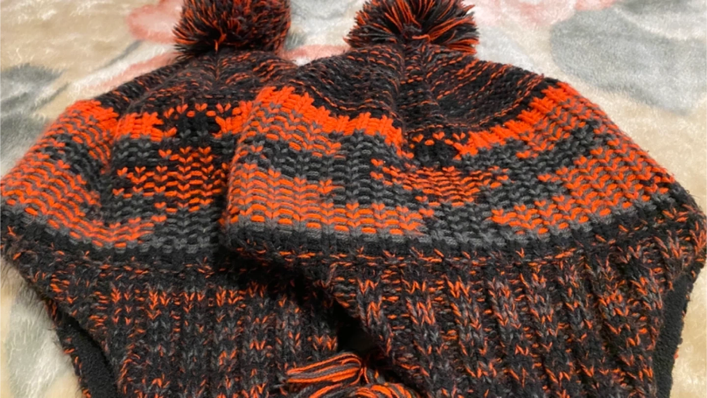 Keep your head warm this winter with this Mountain Warehouse snow beanie! It features a fun pom pom on top and a stylish orange and grey pattern