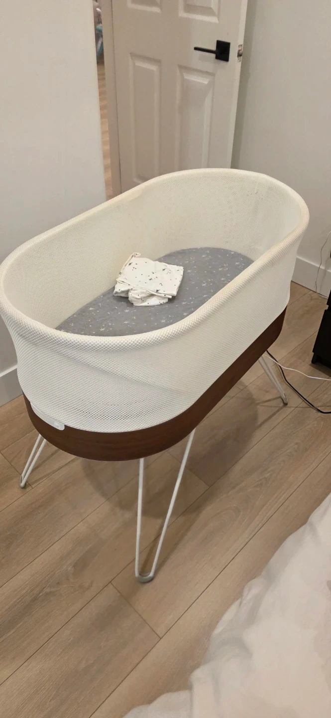 Selling a Happiest Baby Snoo Smart Sleeper Bassinet in great condition! This bassinet is designed to soothe your baby and help them sleep better. It responds to your baby's cries with gentle rocking and white noise. It's been well taken care of and is ready for a new home